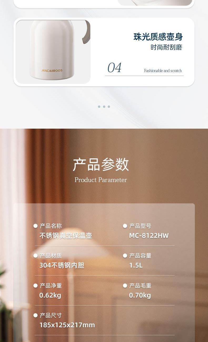 美国迈卡罗不锈钢真空保温壶MC-8122HW