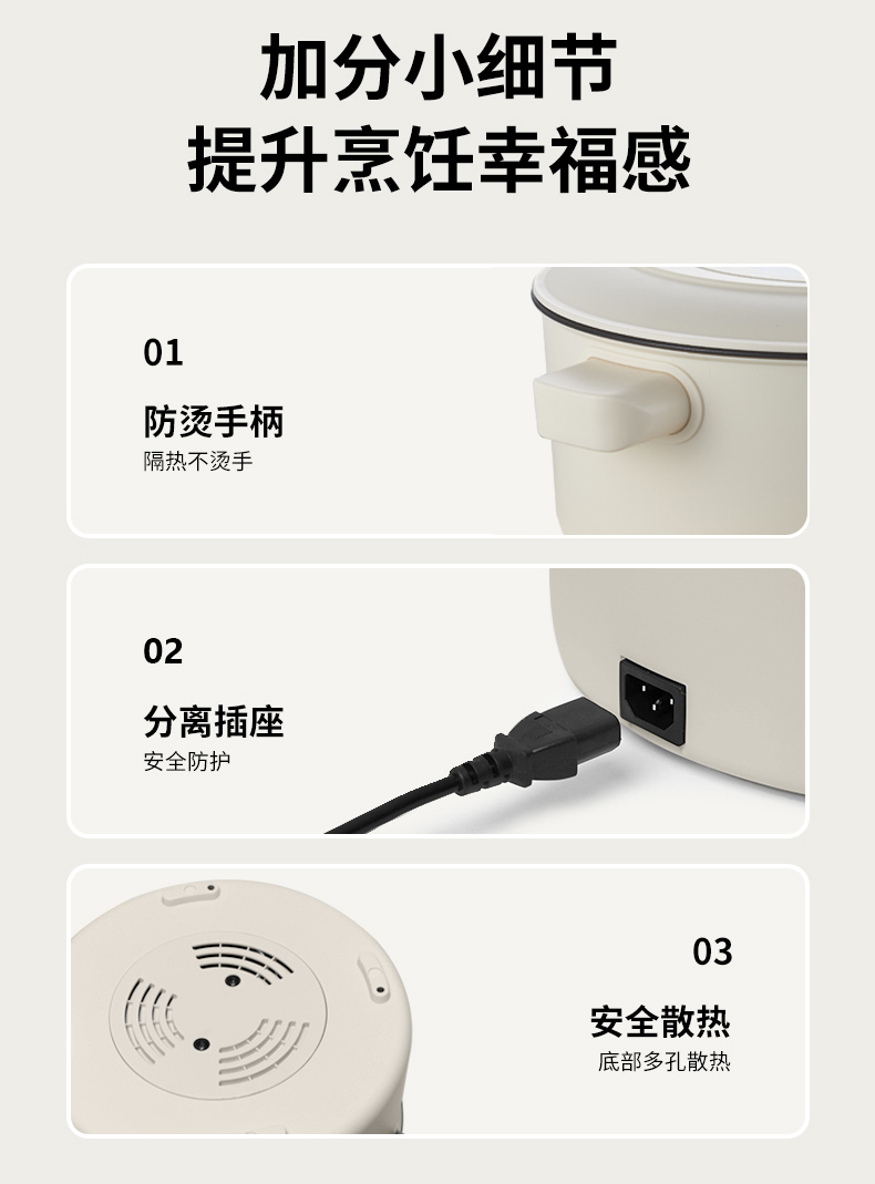 • 简约耐看锅身,防烫更实用:日常使用更顺手,颜值也在线