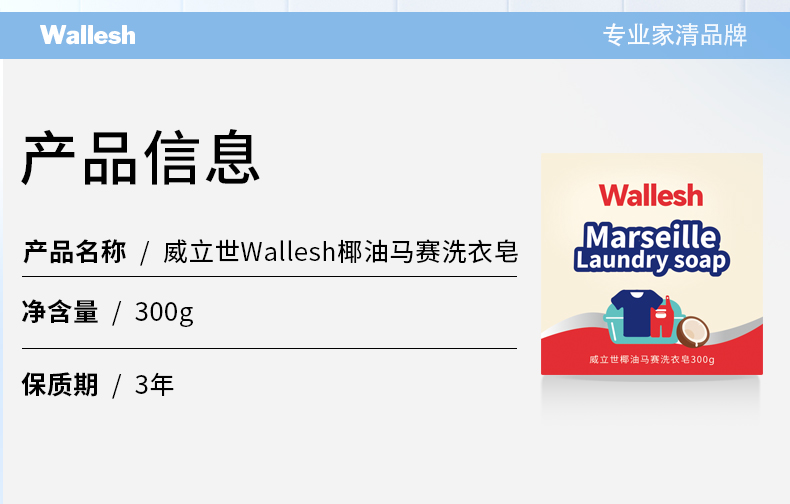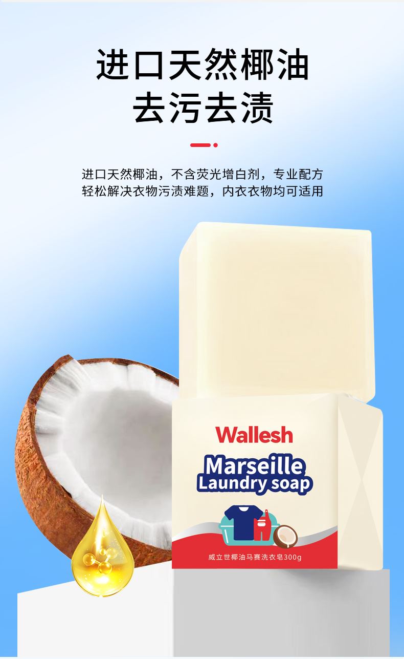 威立世Wallesh椰油马赛洗衣皂300g