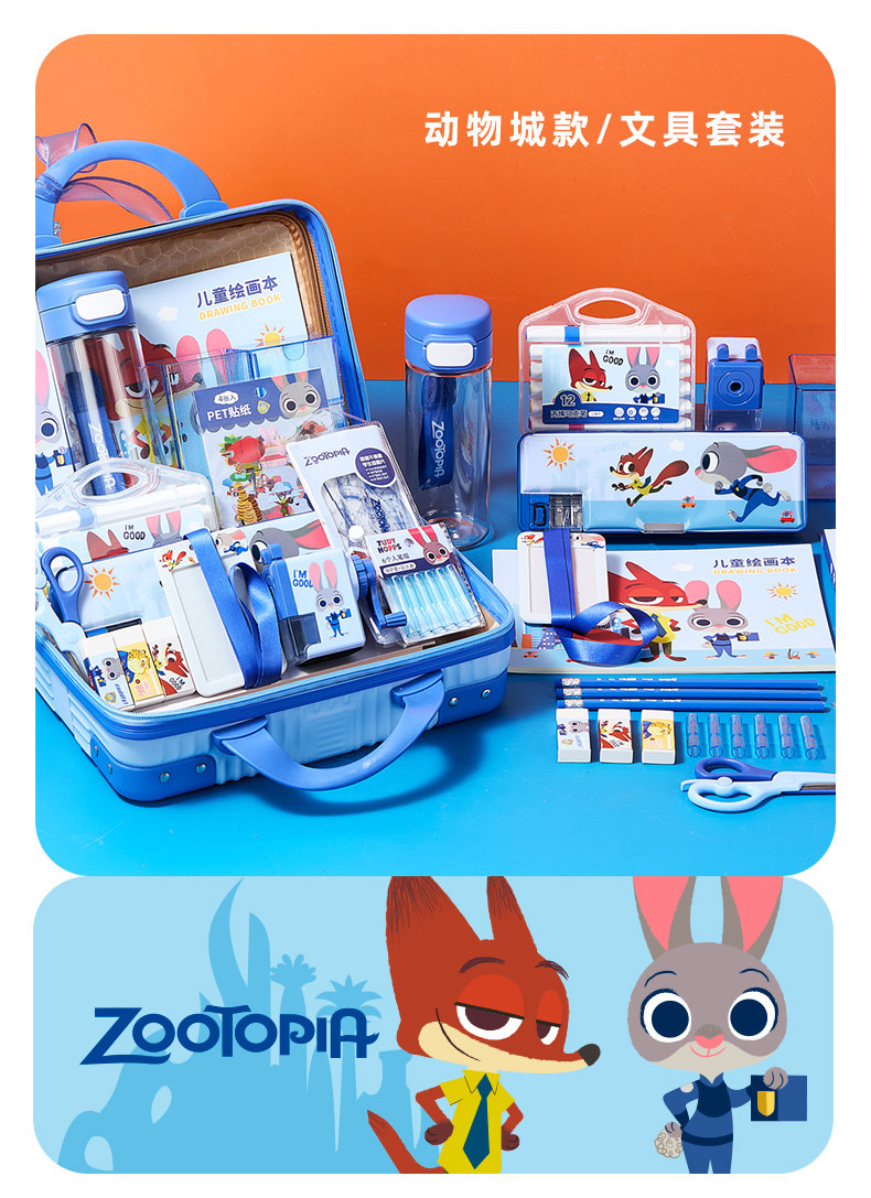 迪士尼疯狂动物城儿童开学手提大礼包学习文具礼盒A90214