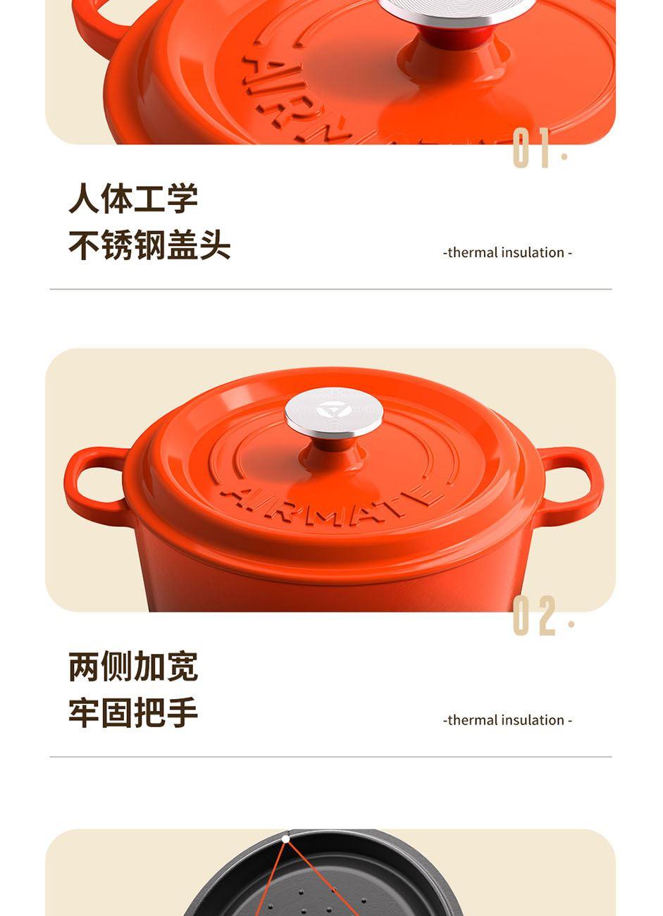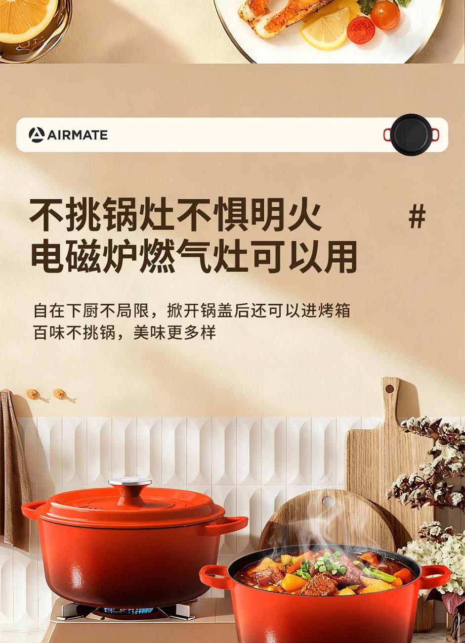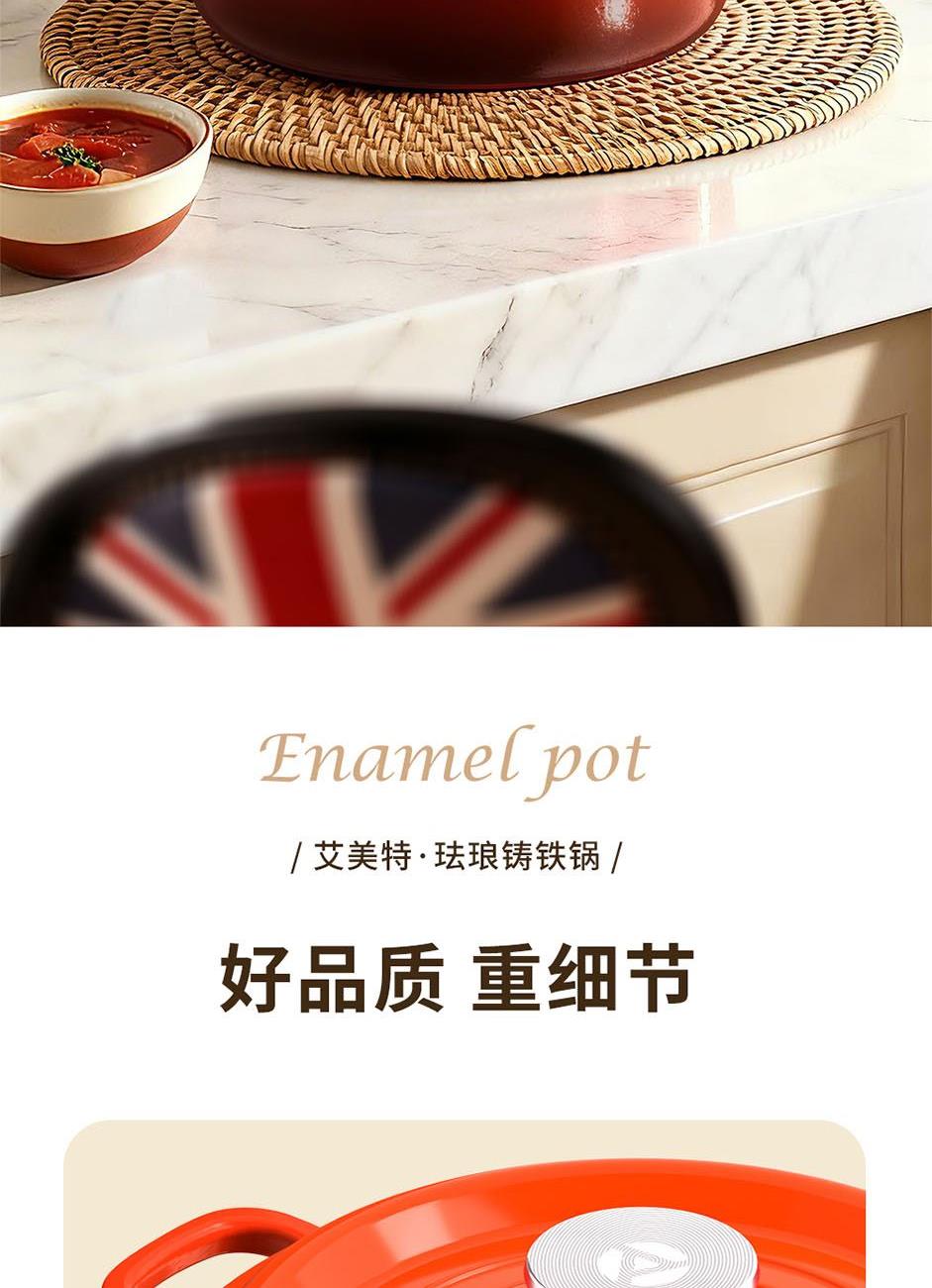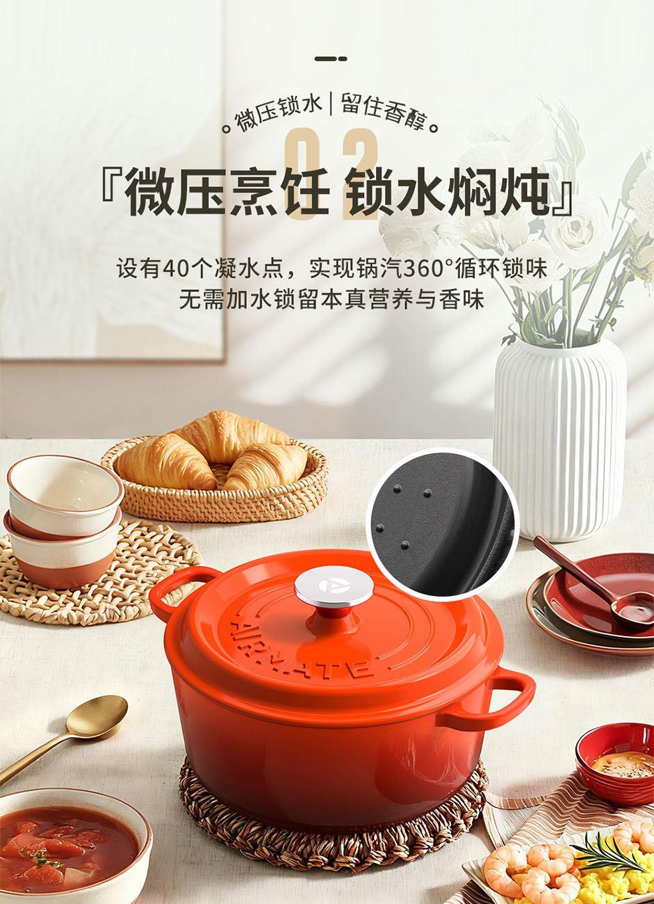 产品尺寸:22cm 产品净重:3.8kg 容量:3L 包装尺寸:295*295*150mm 1、铸铁材质,受热均匀,经久耐用 2、无机玻璃瓷釉,耐高温,不褪色,清洁方便 3、可用于炖、煲、焖、煎、炒、烤等多种烹饪方式 4、适用于多种炉灶,如电磁炉、电陶炉、明火、烤箱等,甚至还 能放在微波炉中使用