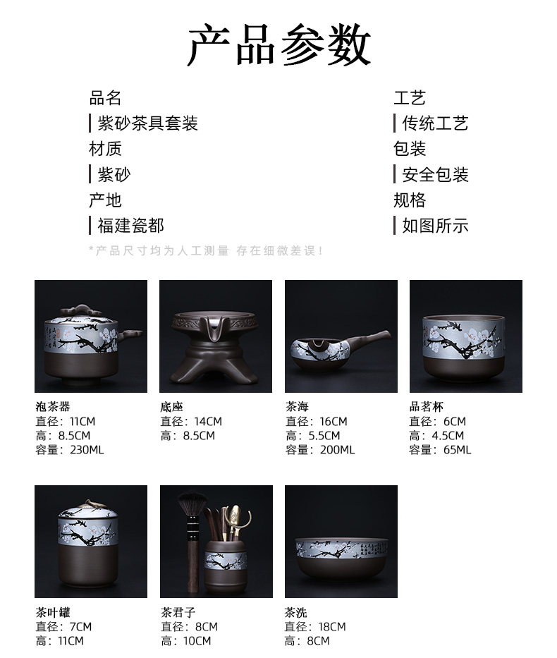 茶海:16*5.5厘米 品茗杯:6*4.5厘米 茶叶罐:11*7厘米 配置齐全,商务实用,古朴典雅,甄选好礼,天然矿物釉,高温烧制无铅镉 ,包装礼盒轻奢新颖,搭配礼盒包装,自用赠礼两宜,保温性能良好,能有效锁住茶汤温度,让您在较长时间内都能品尝到温热适宜的茶汤。