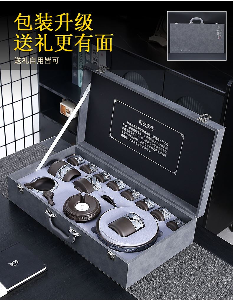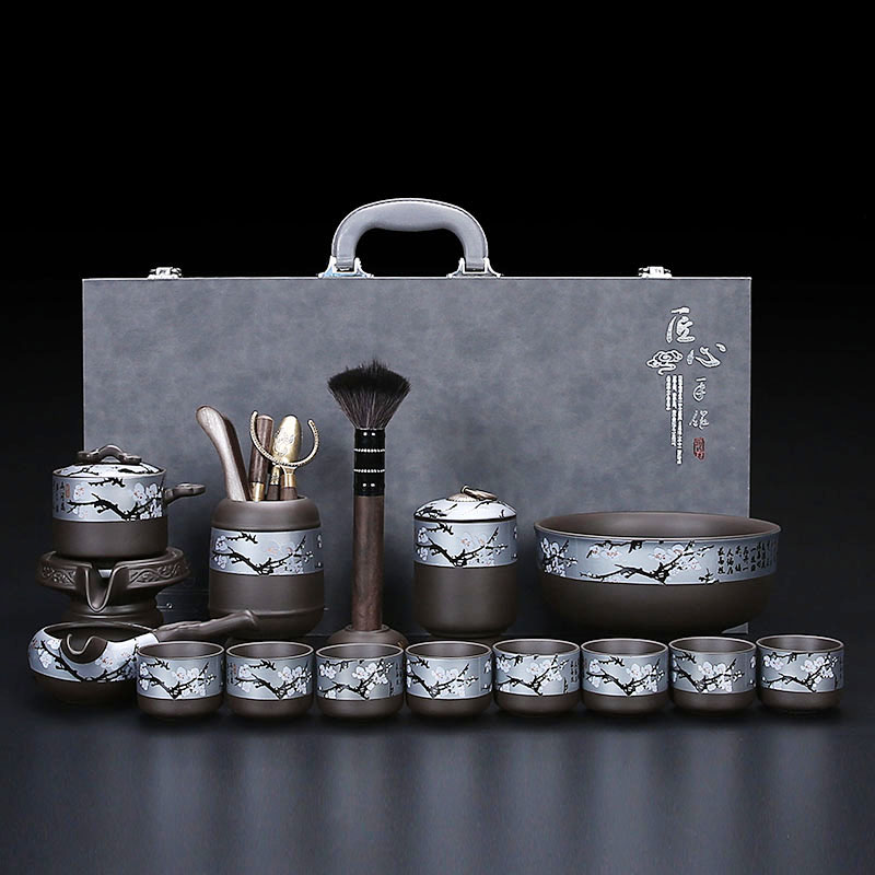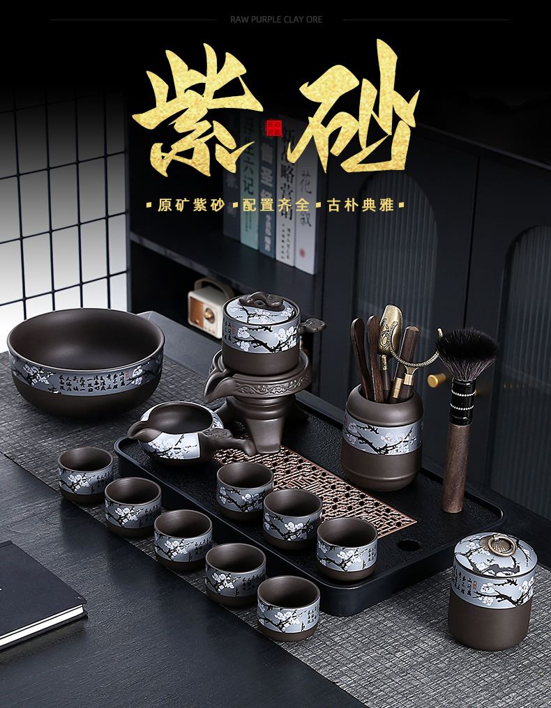 瓷语花香梅花紫砂自动茶具套装