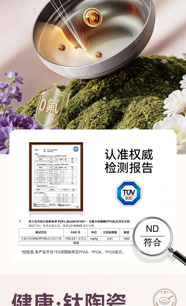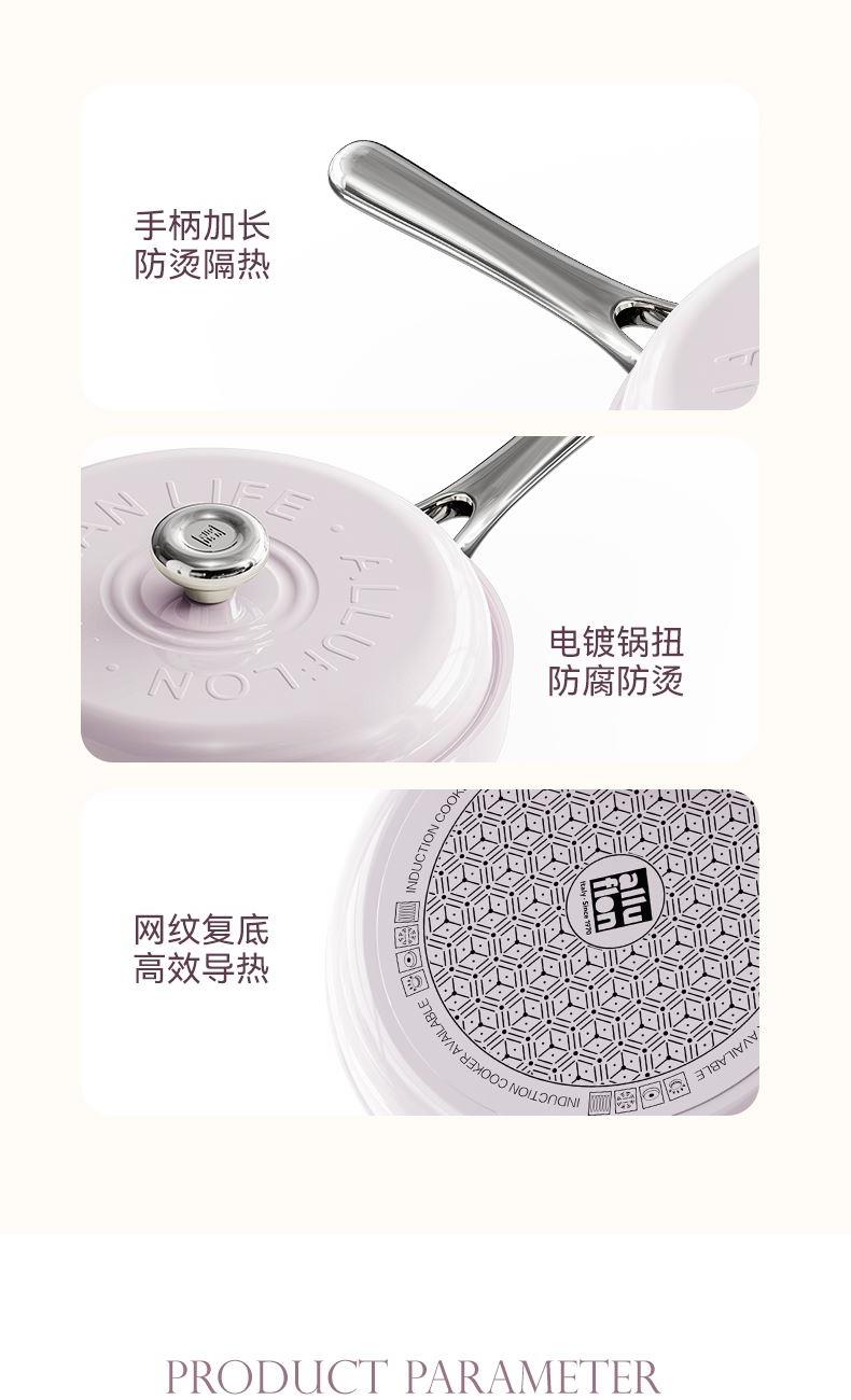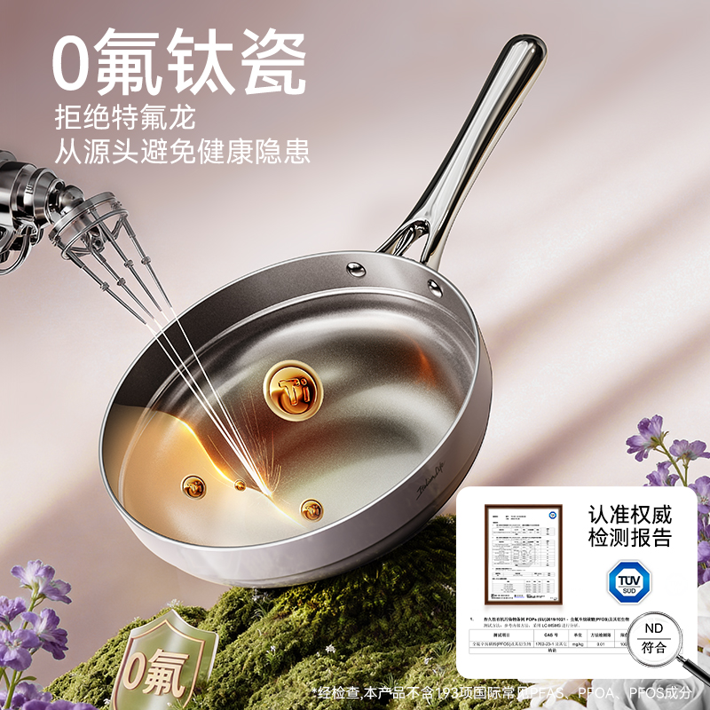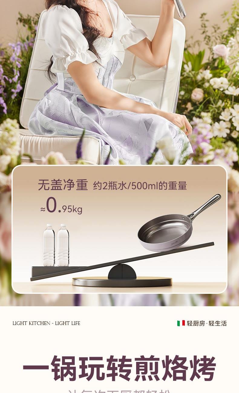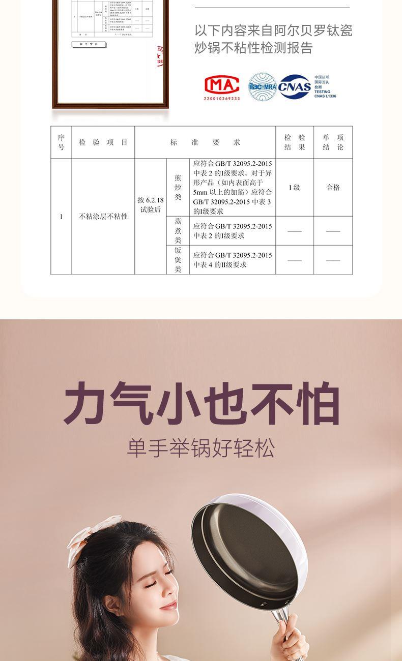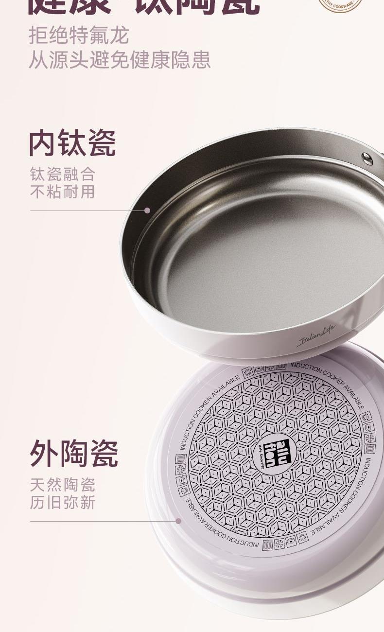 规格:26cm 材质:铝合金+陶瓷 入箱:1个/箱 单个尺寸:482*322*105 1、国标1级不粘,钛不粘不糊底 2、钛瓷革新材质,0氟0析出0涂层 3、9HV硬度,持久耐磨不粘 4、锅体减重约18%,单手可颠 5、可进洗碗机,解放双手。