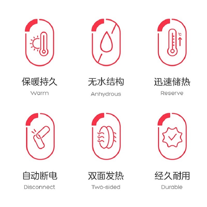 卖点 型号:DR60-1 功率:500W 功能:内置双温控器,自动控混,自动断电,双面均匀发热,安全可靠, 包装:纸盒 参数 1、采用磨砂喷塑铁制外壳,坚固耐用手感更佳 2、内置双温控器,自动控混,自动断电,安全可靠 3、采用多层储热材质,6-10分钟快速储热,双面均匀发热持久温暖 4、含防烫布套