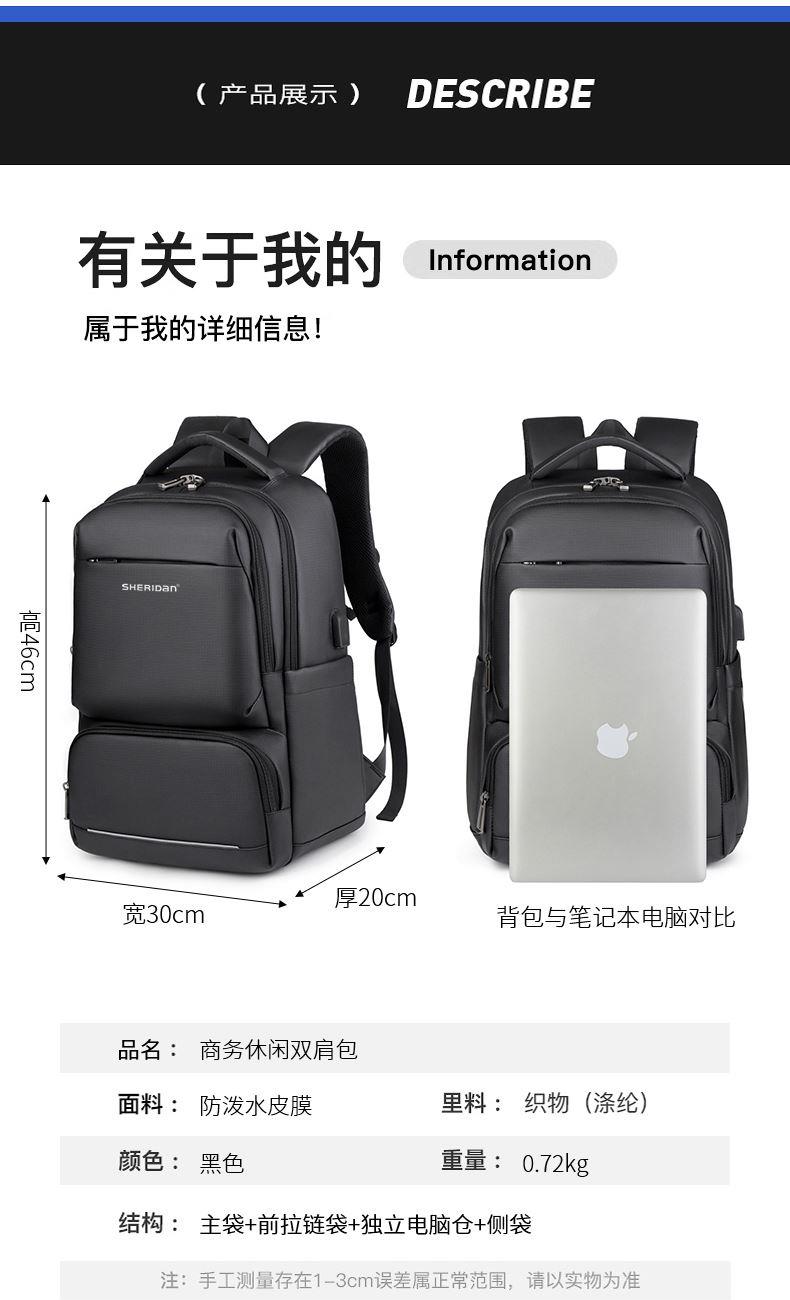 材质:防泼水皮膜 颜色:黑色; 规格:高46*宽30*厚20cm; 重量:0.72kg