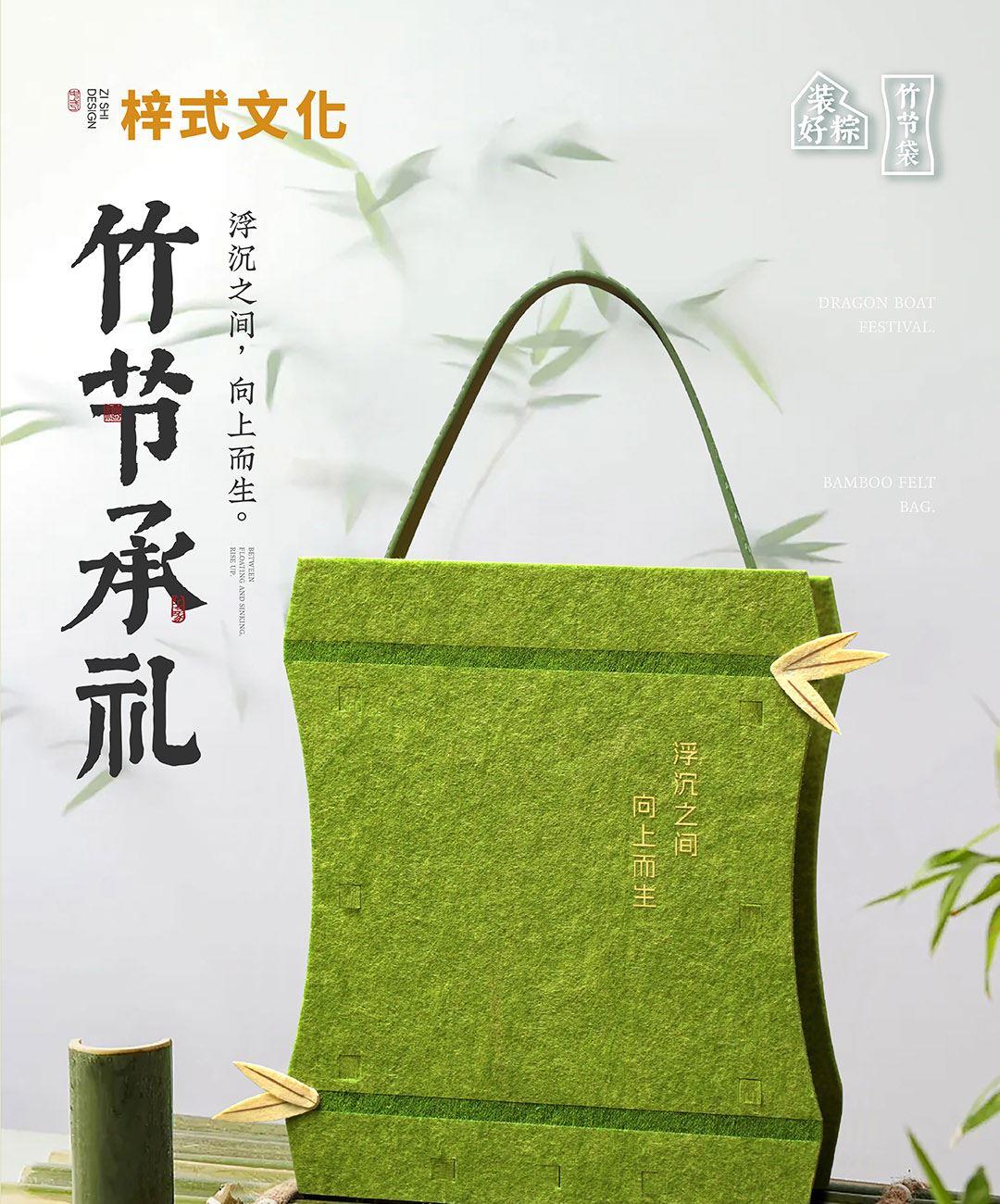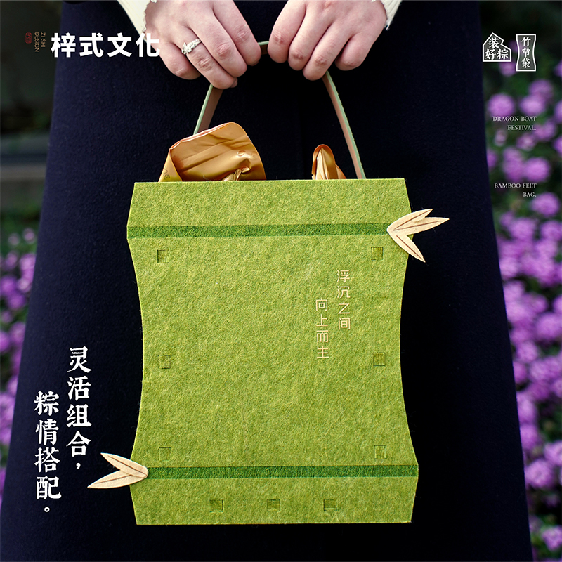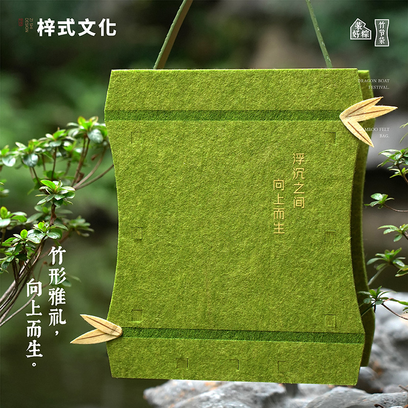 梓式文化竹节承礼向上而生粽子礼袋毛毡袋