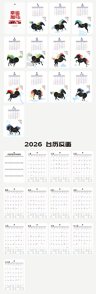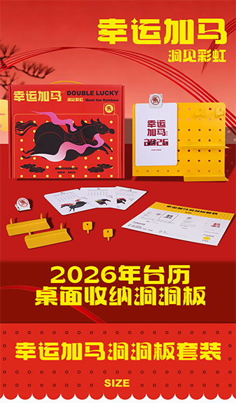贪吃猫文创2026马年幸运加马创意日历台历桌面洞洞板礼盒