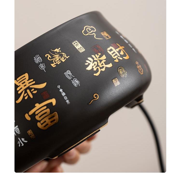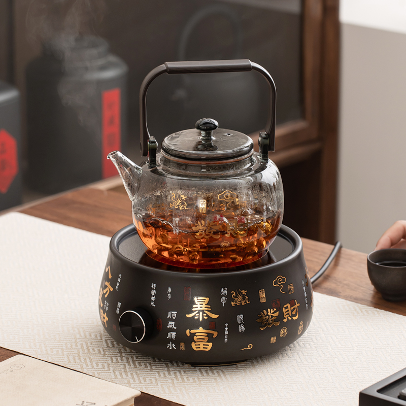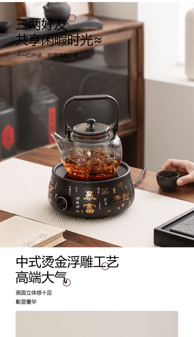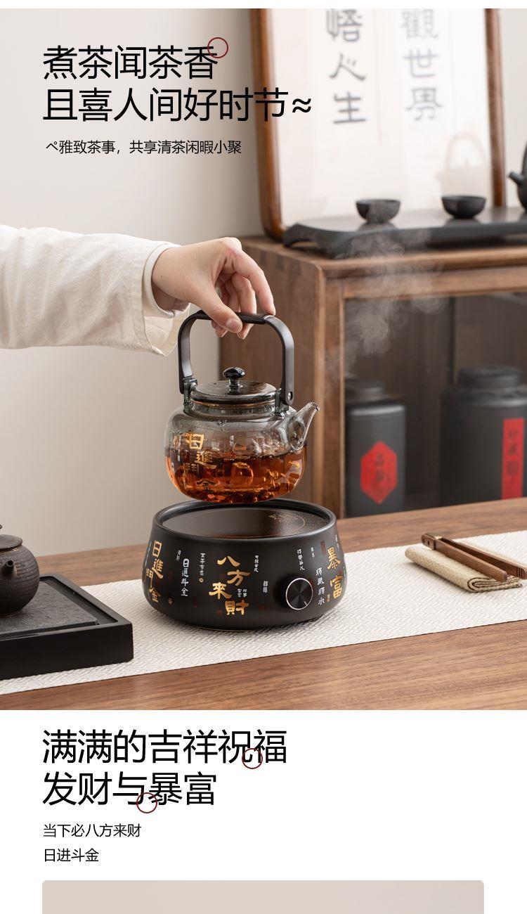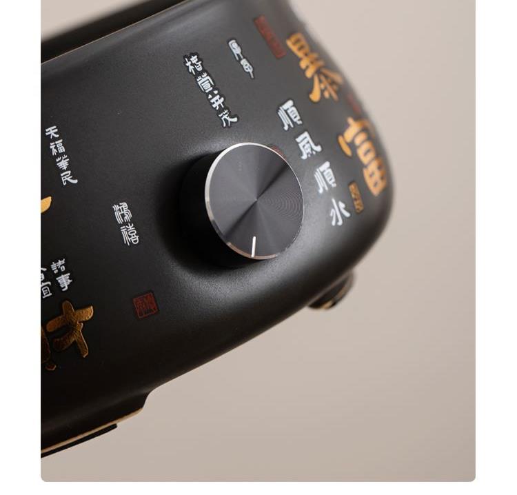 额定电压:220v 额定功率:1000w 航天级材质,旋钮1-6档调节 进口黑色微晶面板,导热均匀效率高 大炉盘大功率大火力,安全无辐射 中式烫金浮雕工艺,画面立体感十足 满满的吉祥祝福“八方来财、日进斗金”