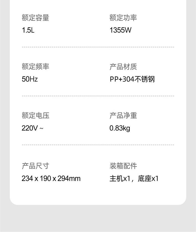 额定容量:1.5L