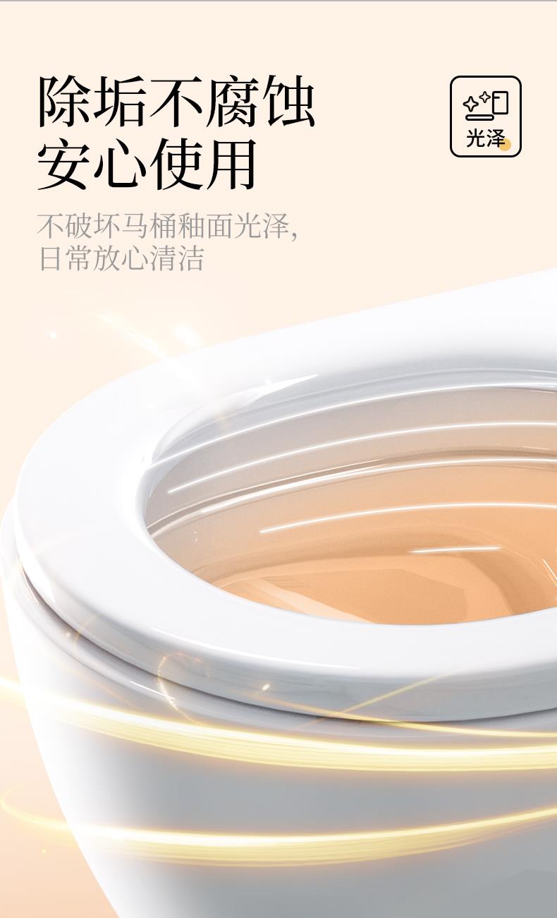 4、除垢不腐蚀,不破坏马桶釉面光泽,安心使用;