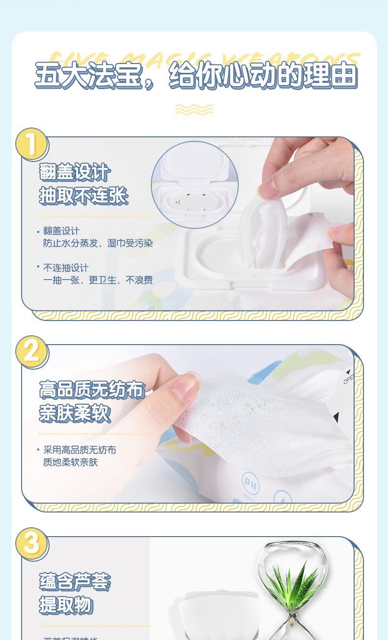 5.湿巾蕴含芦荟提取物,舒缓亲肤,纯净温和;