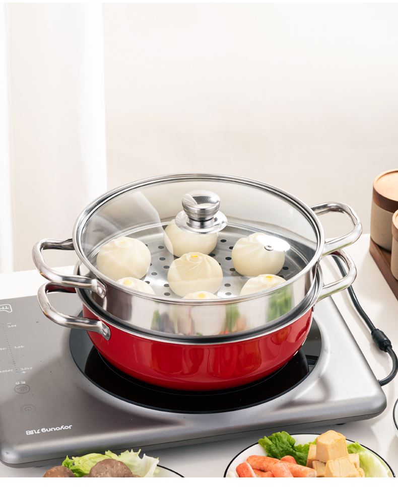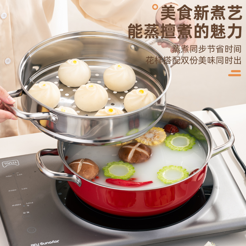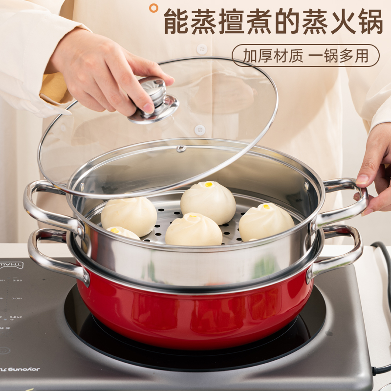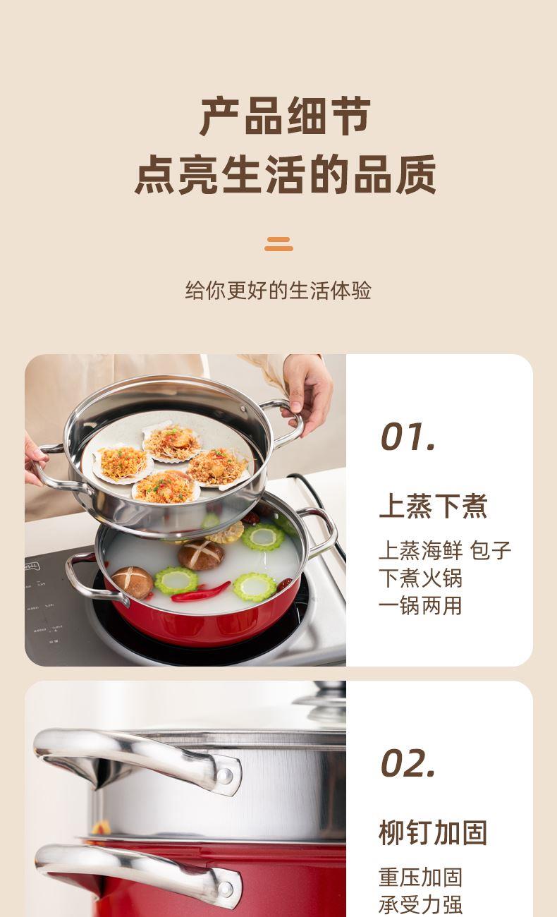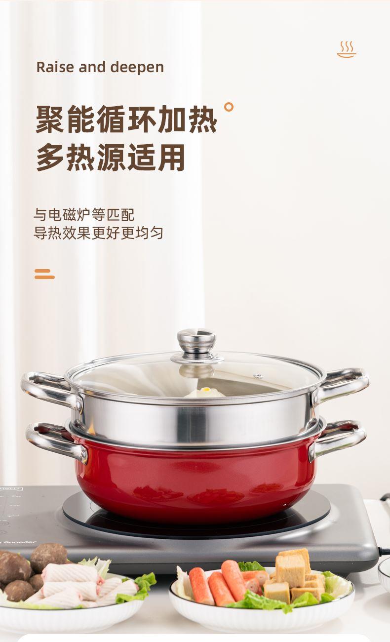 乐厨贺鲤红色团圆双层蒸火锅