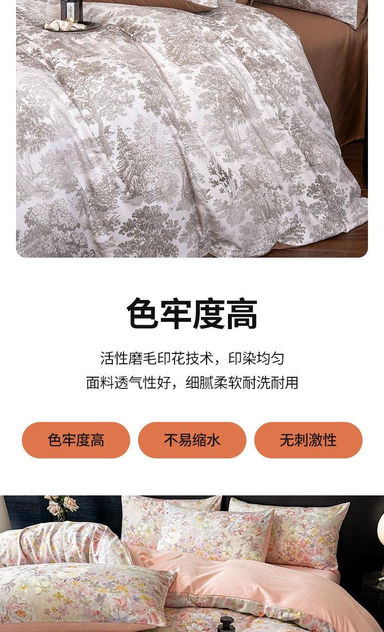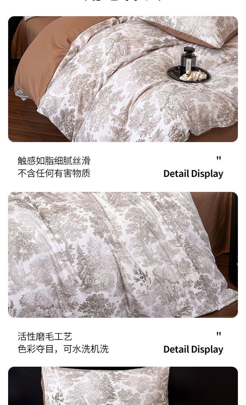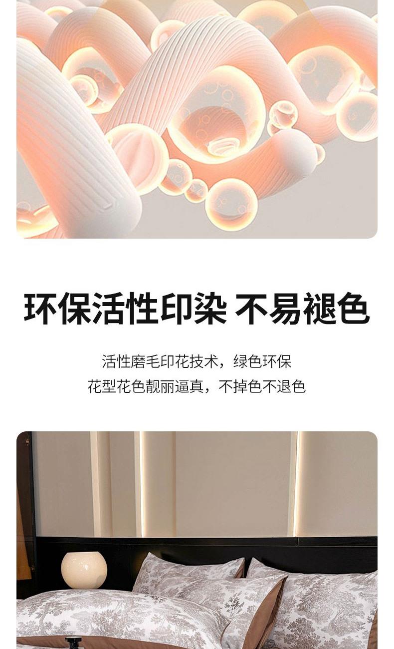 材质:牛奶棉(聚酯纤维) 规格:被套:200*230cm 床单:230*250cm 枕套:48*74cm*2 产品说明: 1.面料选用活性磨毛工艺而成,手感舒适厚实,保暖透气。 2.使用当今流行的活性磨毛印花技术,绿色环保,花型花色靓丽逼真, 不掉色不退色。