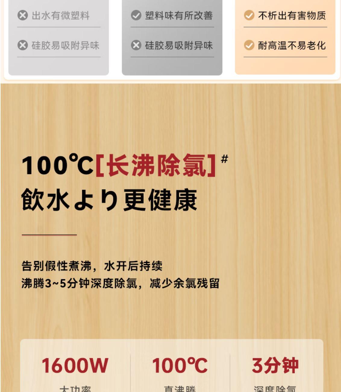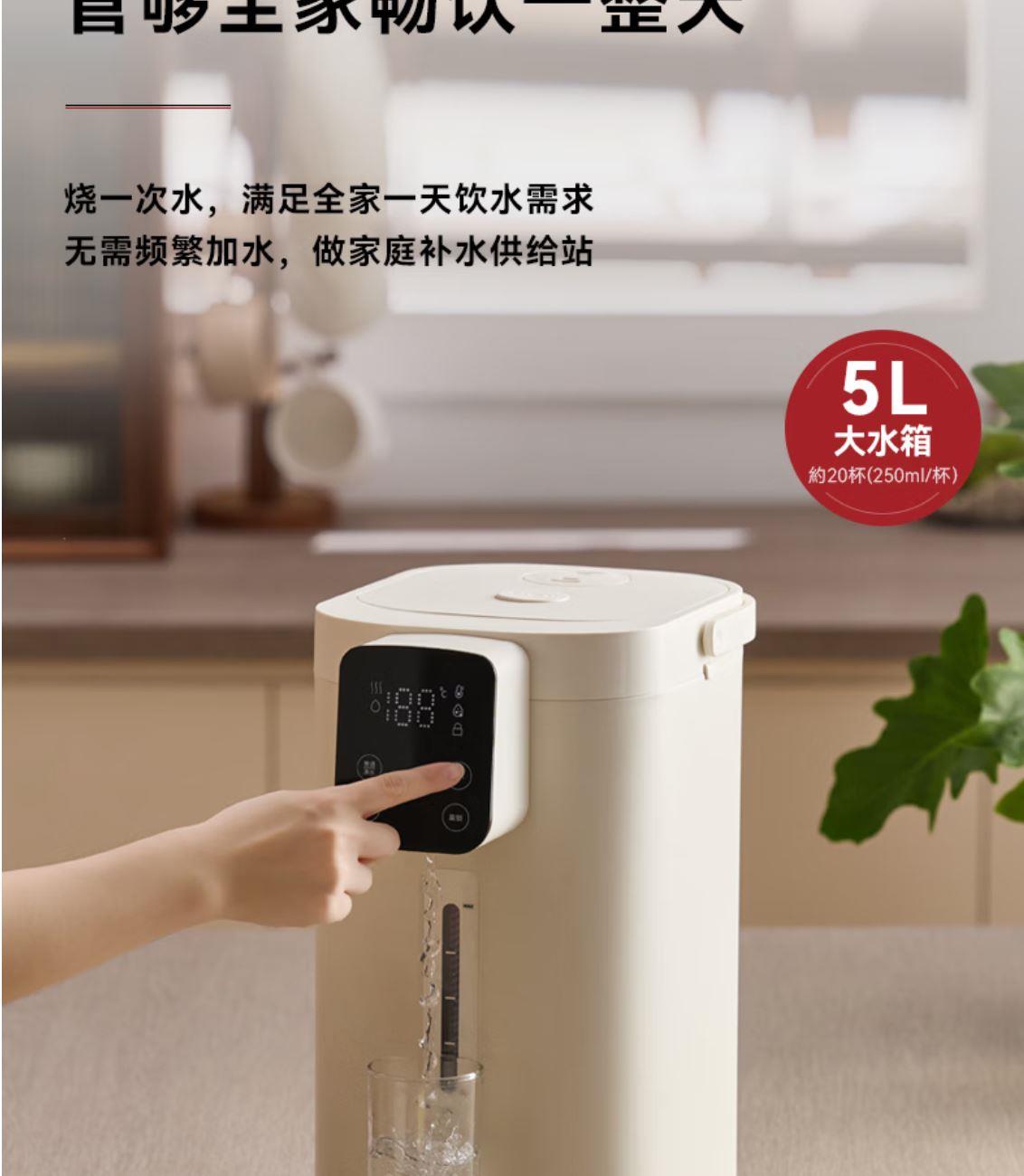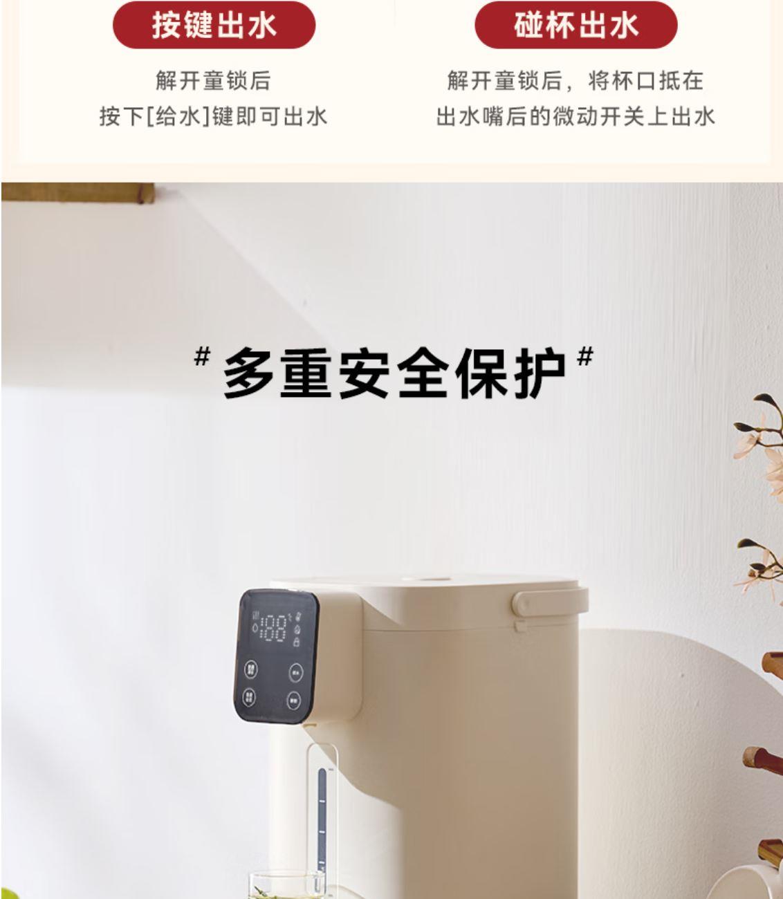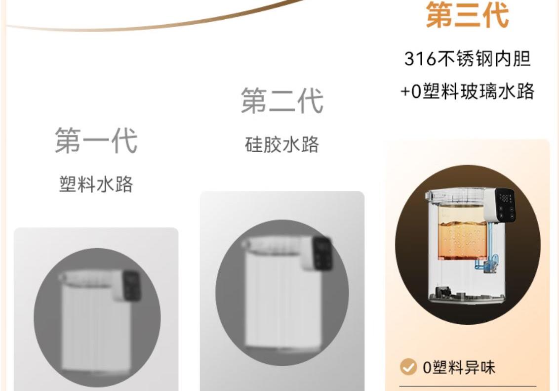 316 不锈钢内胆0,涂层 0 塑料 无异味 1600W 大功率真沸腾 两种模式,自来水 / 纯净水 11 段定温,满足全家冲饮需求 多重安全保护,童锁设计防烫伤 额定功率:1600W 温度设定:11 档 出水方式:电动 / 碰杯 水箱容量:5L 产品尺寸:199*305*312mm