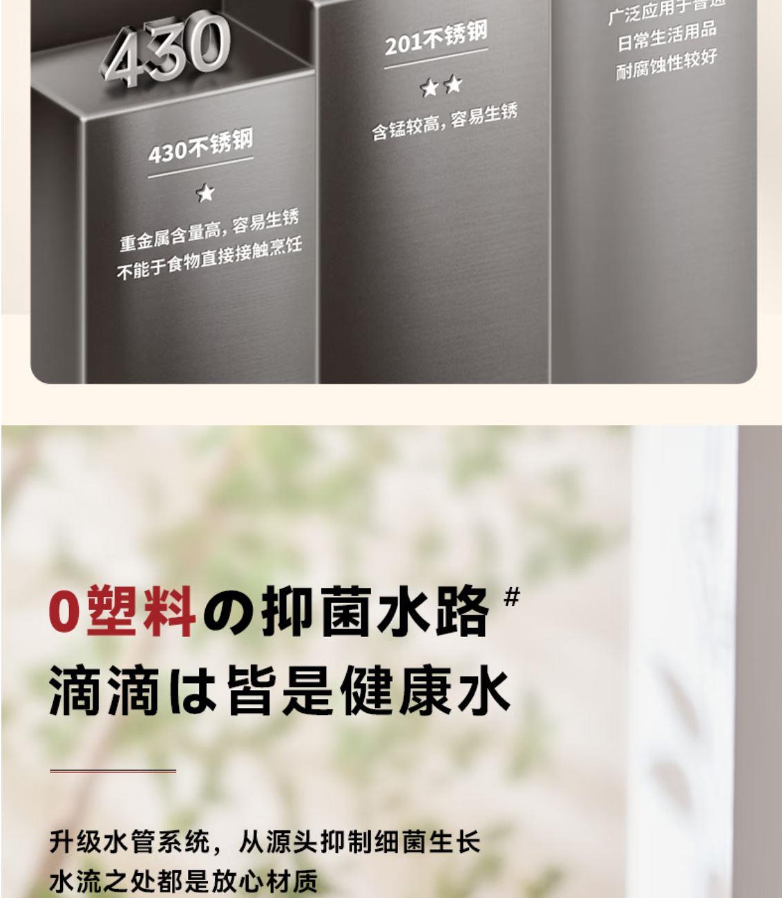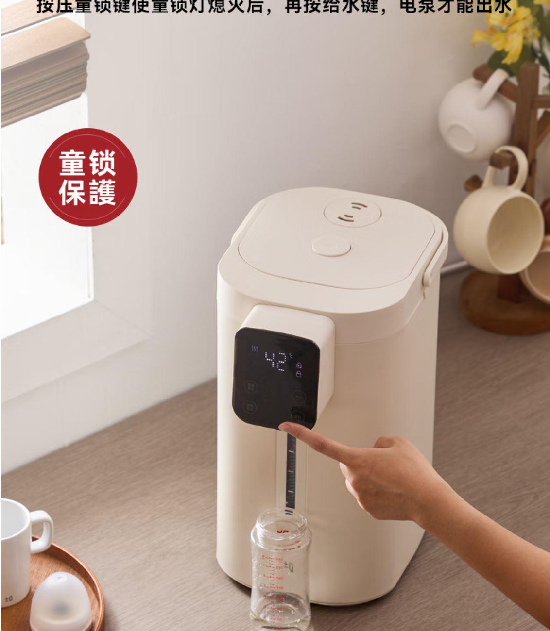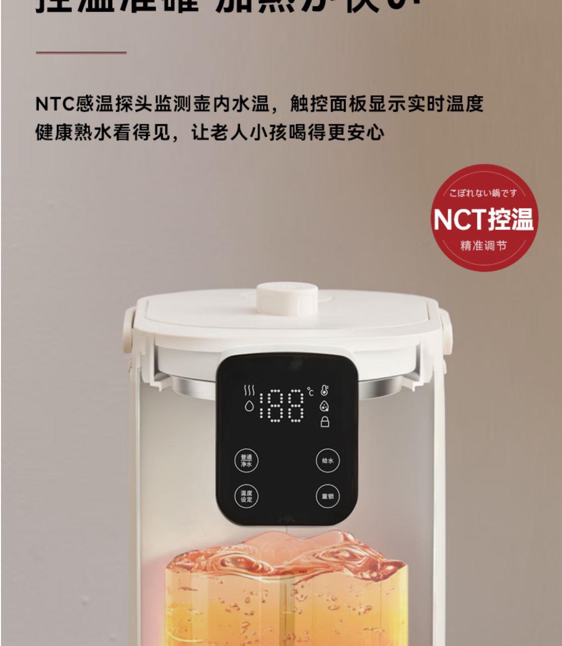 316 不锈钢内胆0,涂层 0 塑料 无异味 1600W 大功率真沸腾 两种模式,自来水 / 纯净水 11 段定温,满足全家冲饮需求 多重安全保护,童锁设计防烫伤 额定功率:1600W 温度设定:11 档 出水方式:电动 / 碰杯 水箱容量:5L 产品尺寸:199*305*312mm