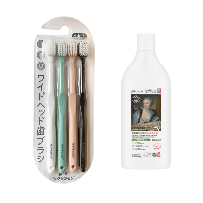 配置:(香型随机/新老包装随机) 1.浅香氨基酸洗发水500g*1 2.浅香氨基酸沐浴露500g*1 3.浅香氨基酸顺滑膏260g*1 4.日本樱之素牙刷4支装*1 5.冷酸灵牙膏185g*1 6.奥妙去渍洗衣液950g*1 7.金纺持久留香清新柔顺护理液950g*1 8.日本花王护肤香皂130g*1 9.SukGarden蔬果园青蒿内衣洗衣液200g*1 10.巾洁源日式素色沐浴球50g*1 11.繁花系列精美彩盒*1