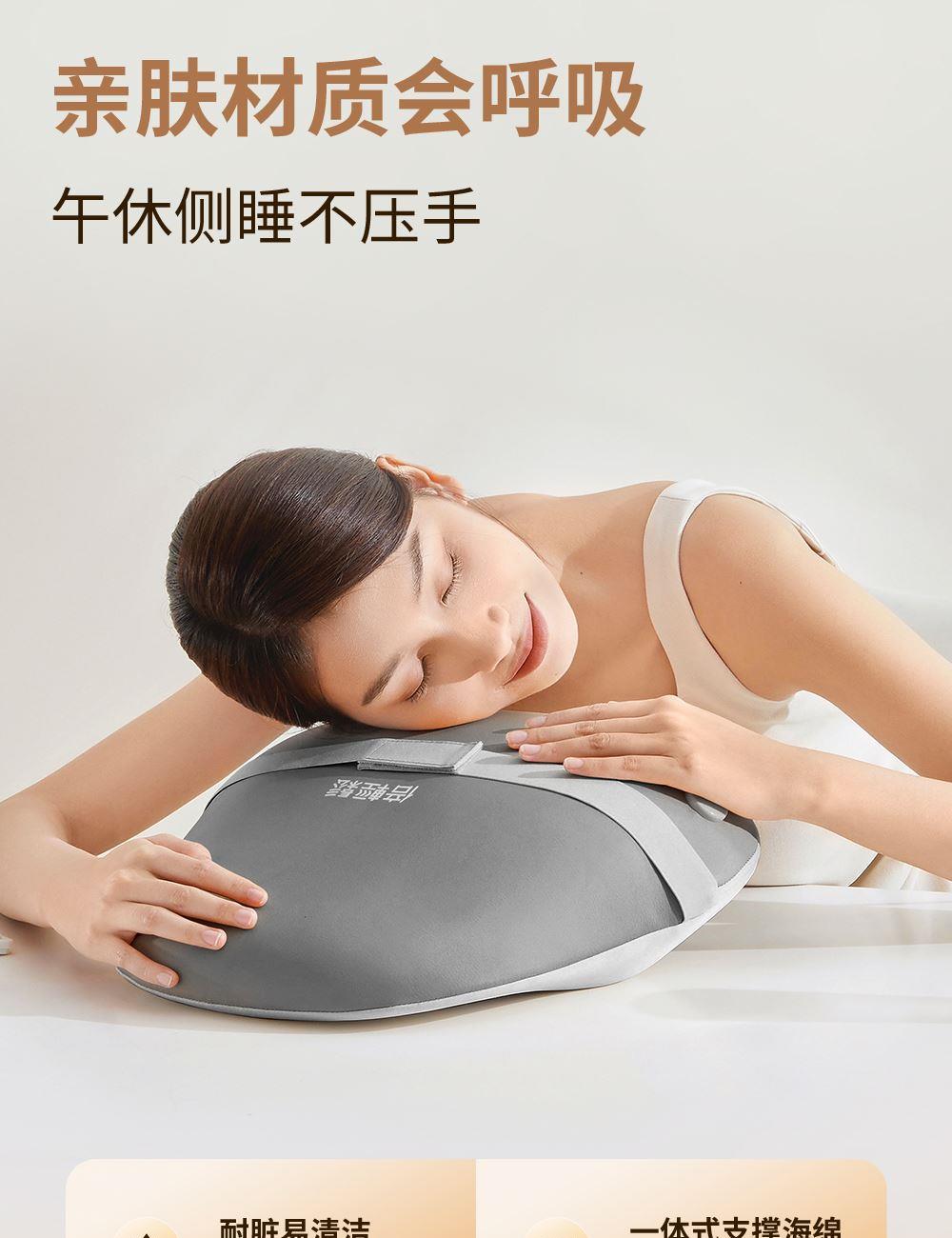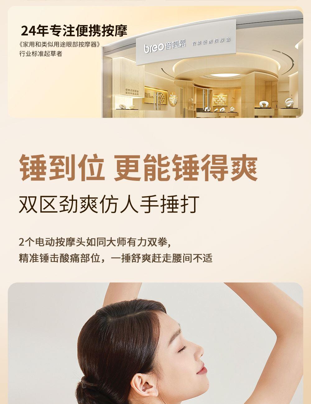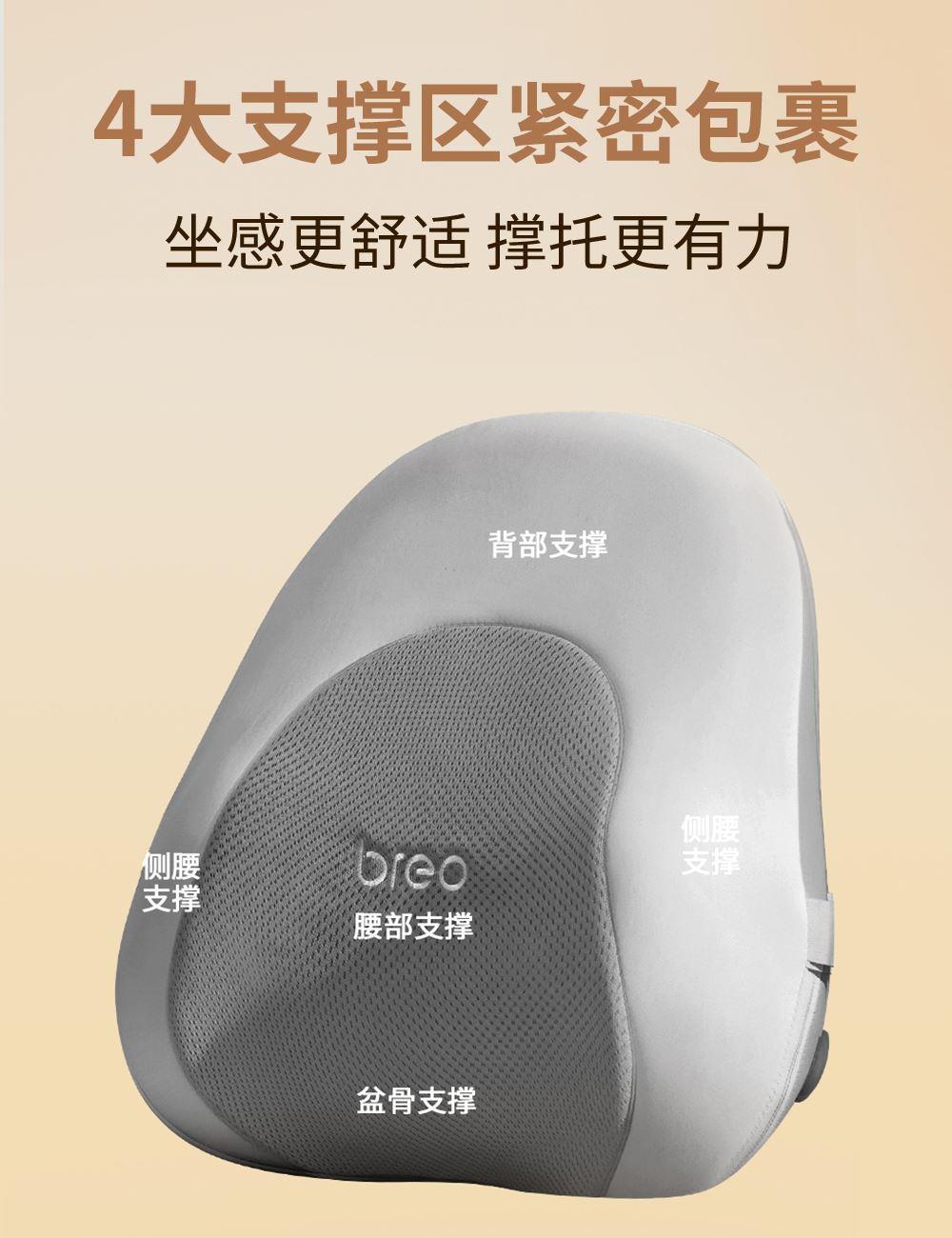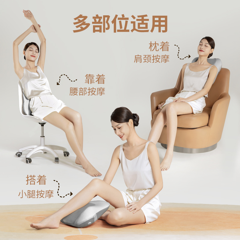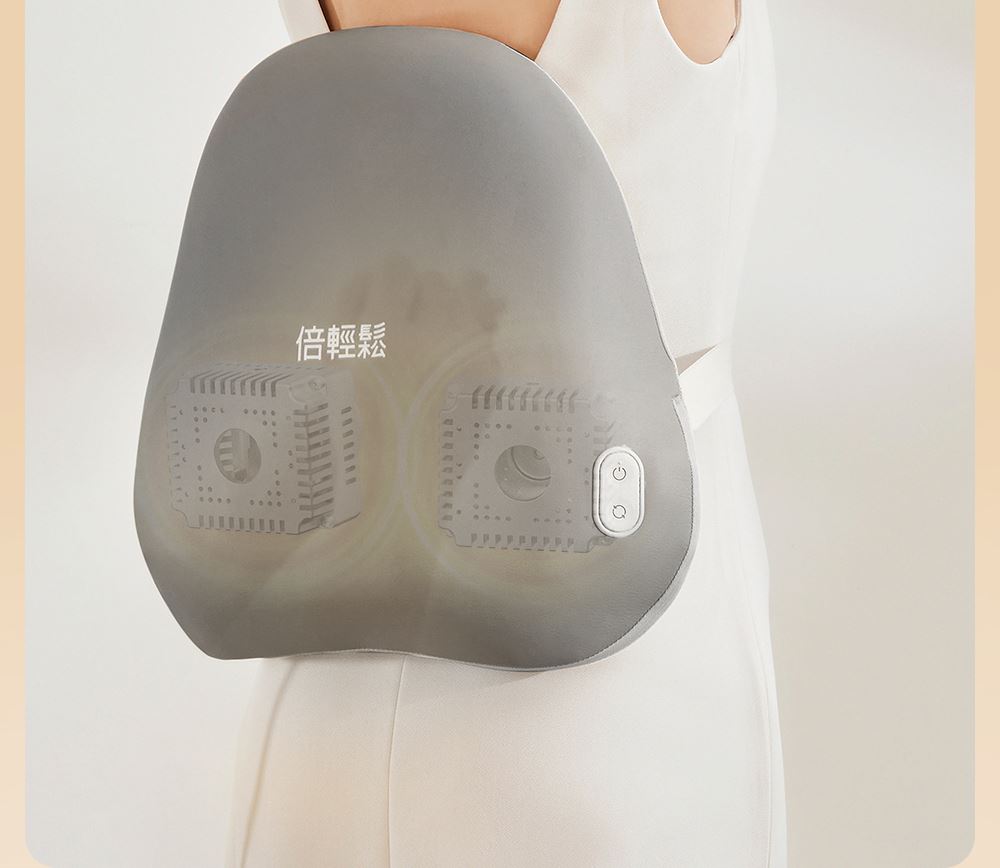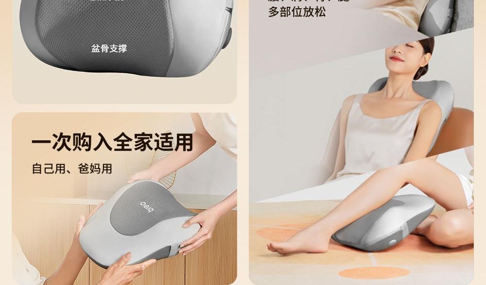 双区捶打,还原捶背真实感_x000b_ 2个电动按摩头有力敲击腰部,如同双拳攥劲发力,一捶舒爽赶走腰间不适 3个模式,快慢有序 智能芯片调控,提供3个模式,低、中、高挡力度选择 如训练有素的按摩匠人,手法讲究不乱打 分区承托腰背,缓解久坐压力 根据久坐时腰背的受力分布,设计支撑 紧密包裹身体充分承接腰背部压力,久坐不怕累
