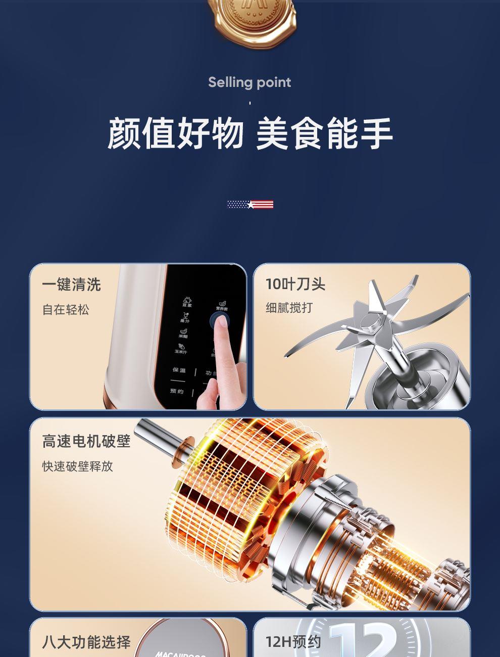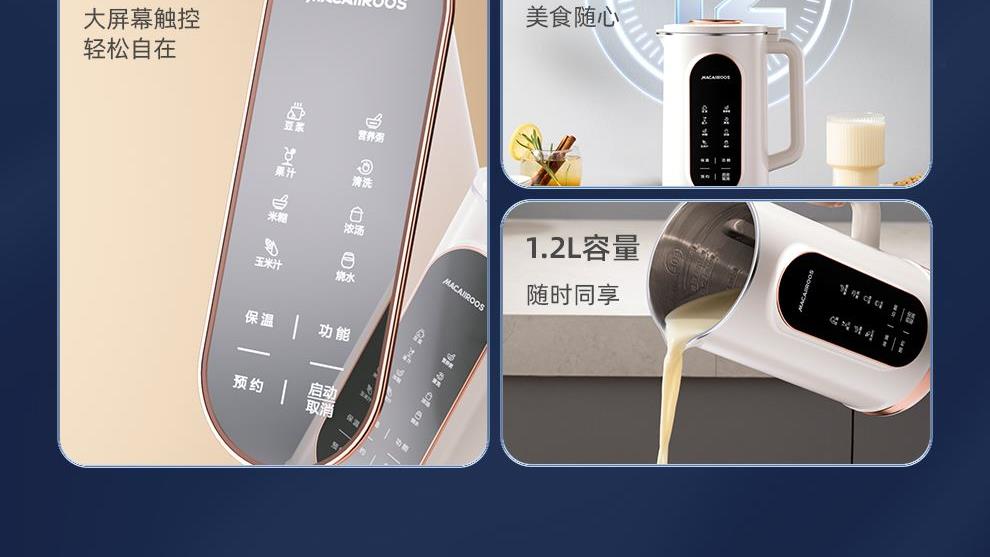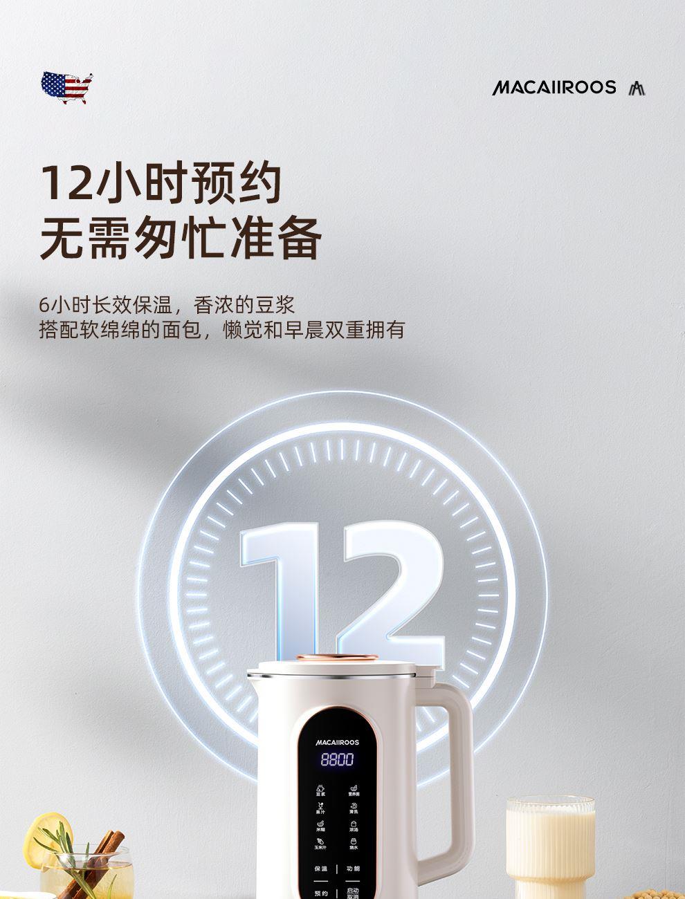一机多用&智能触控屏冷热双打,一键清洗;10大菜单选择,12H预约,6H长效保温;