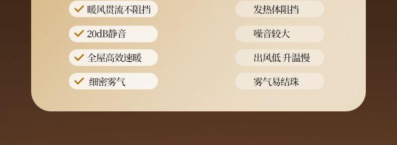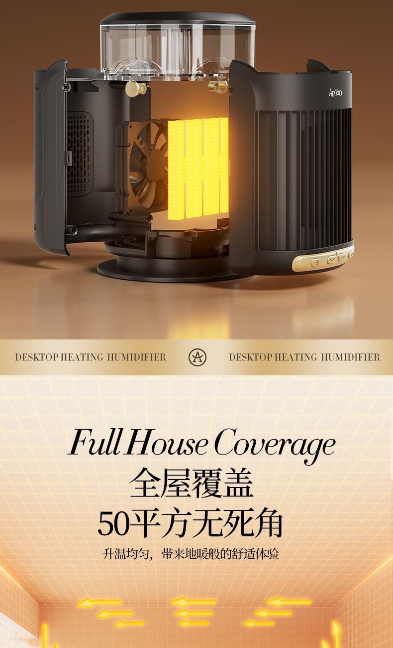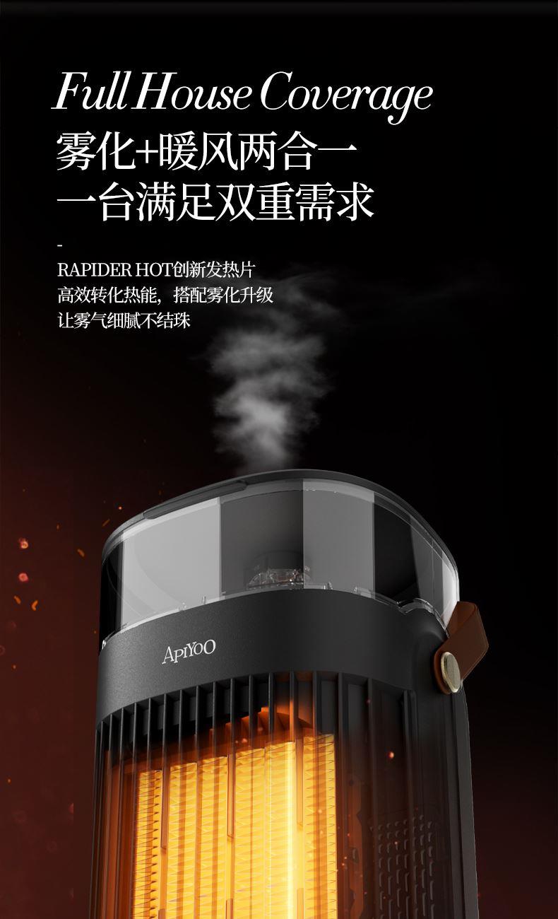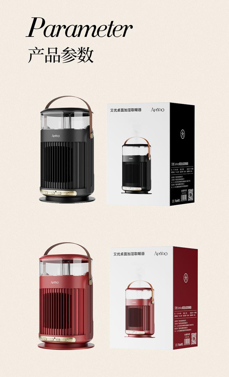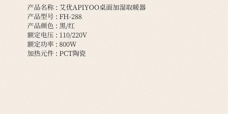 产品型号:FH-288 颜色:红/黑 额定电压:110/220V 额定功率:800W 单品净量:约914g 产品尺寸:90x60x335mm 1、全屋覆盖,50平方无死角。 2、AI变频温控系统,每小时仅需一度电 3、静音设计,睡眠无忧 4、雾化+暖风两合一,一台满足双重需求 5、具备摔倒倾斜,自动断电功能