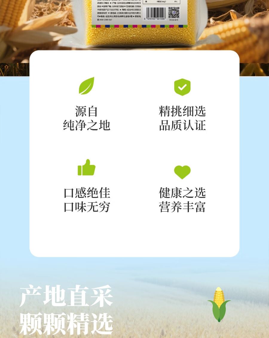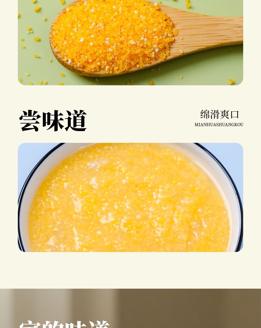吉潮瑞鲜延边杂粮-玉米糁500克*1袋 配料:玉米碴 类别:谷物加工品 净含量:500g 产地:吉林省汪清县 保质期:12个月 贮存方法:置于阴凉通风干燥处