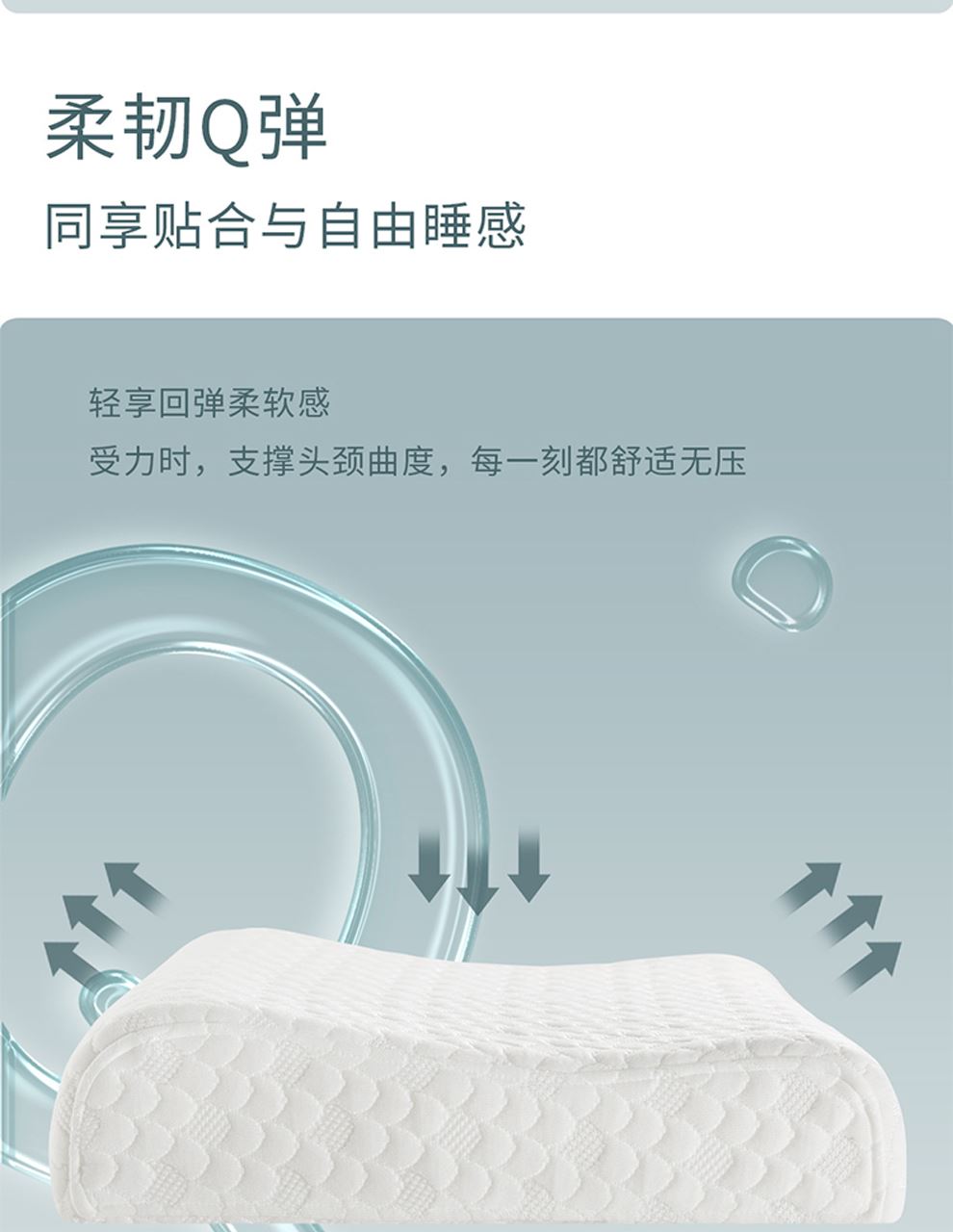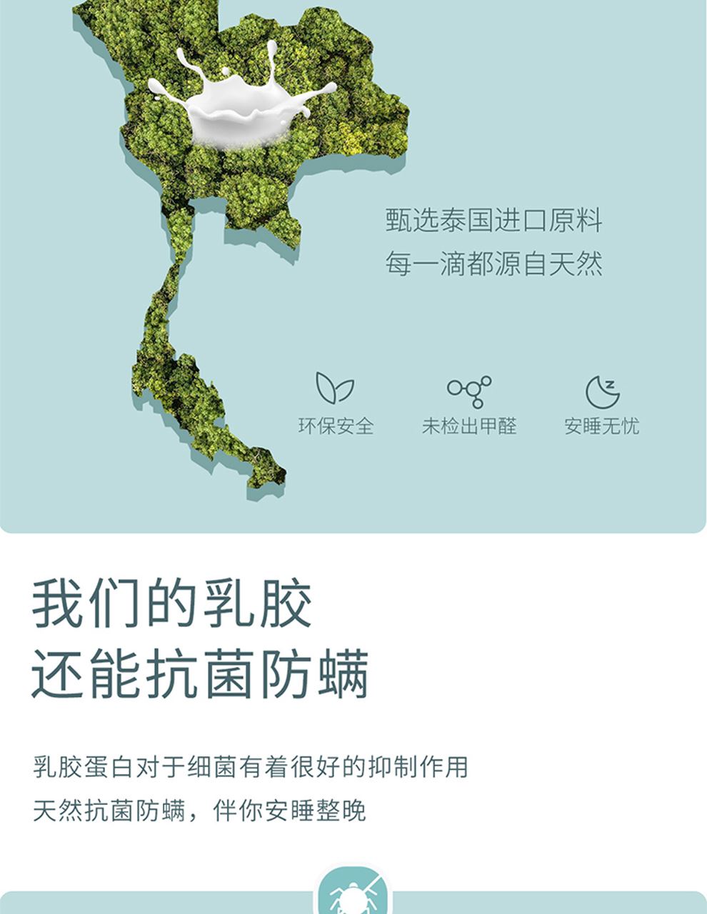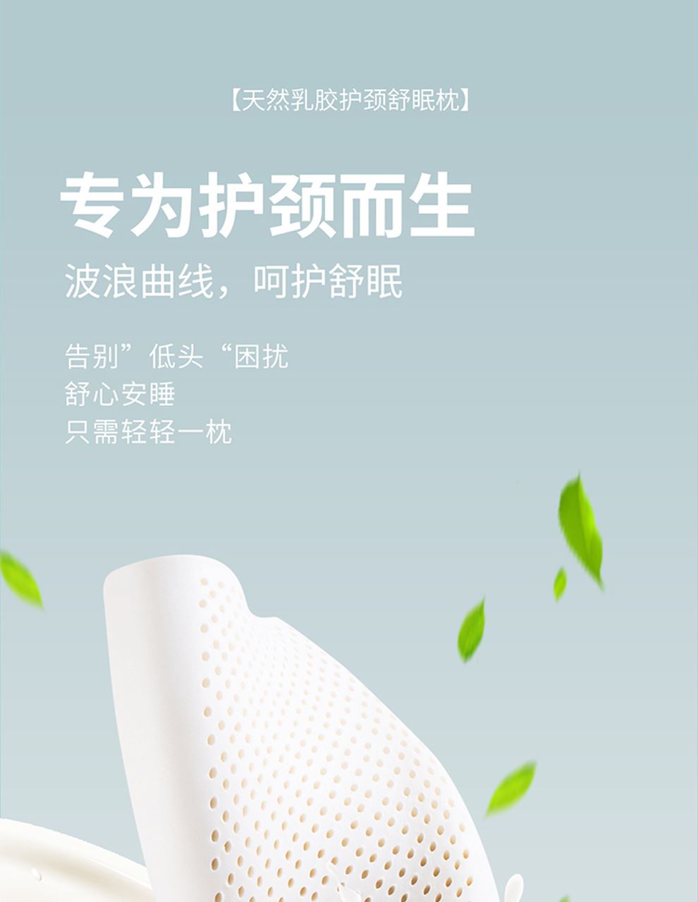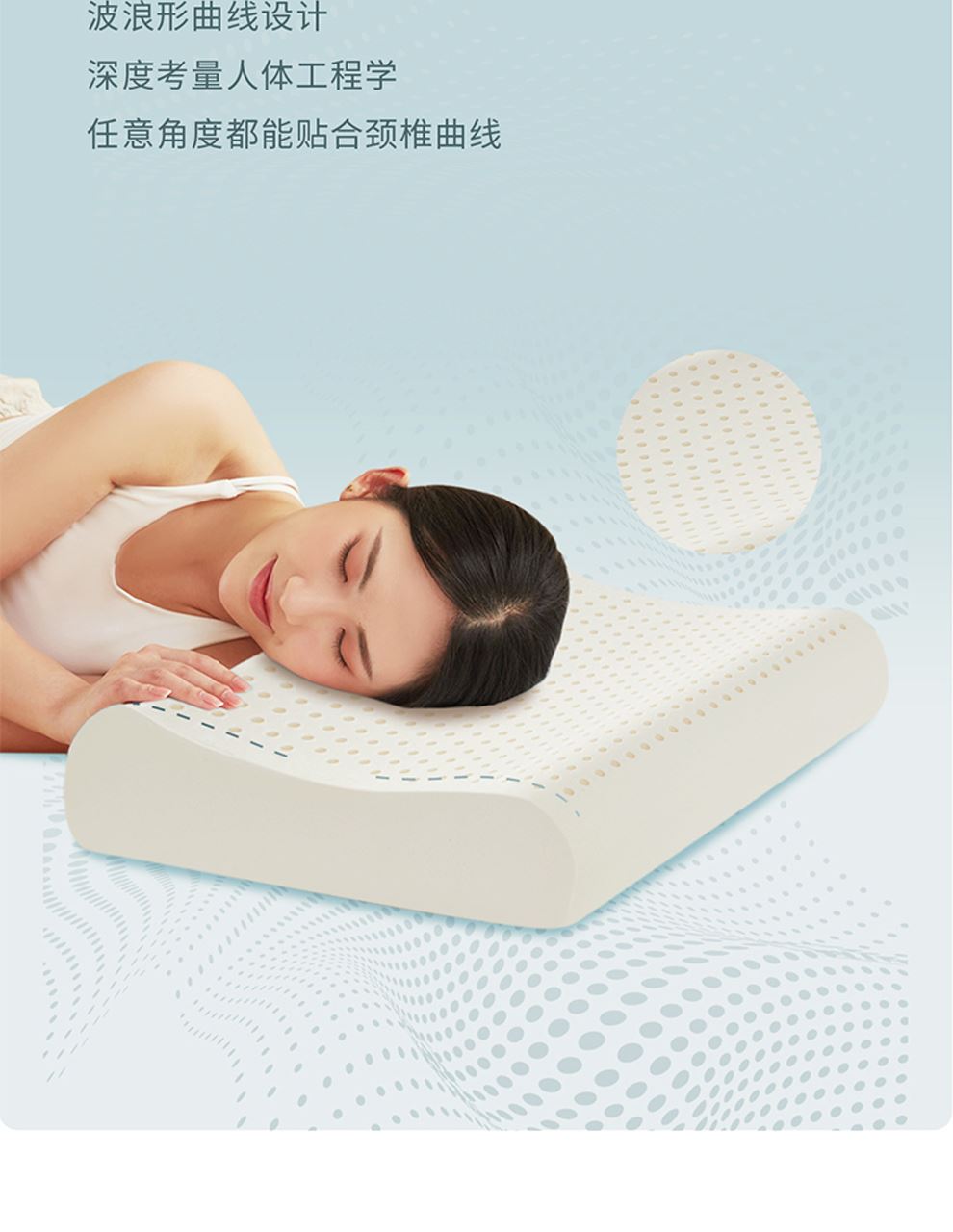4.泰国天然乳胶:具有柔嫩触感和高效回弹性能,无论平躺还是翻身,都能迅速响应头部变换,更灵敏地贴合头颈。而且天然乳胶蛋白具有抑制细菌和防螨效果,守护身体健康