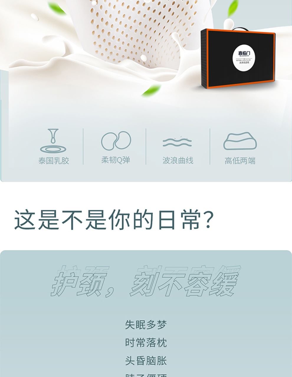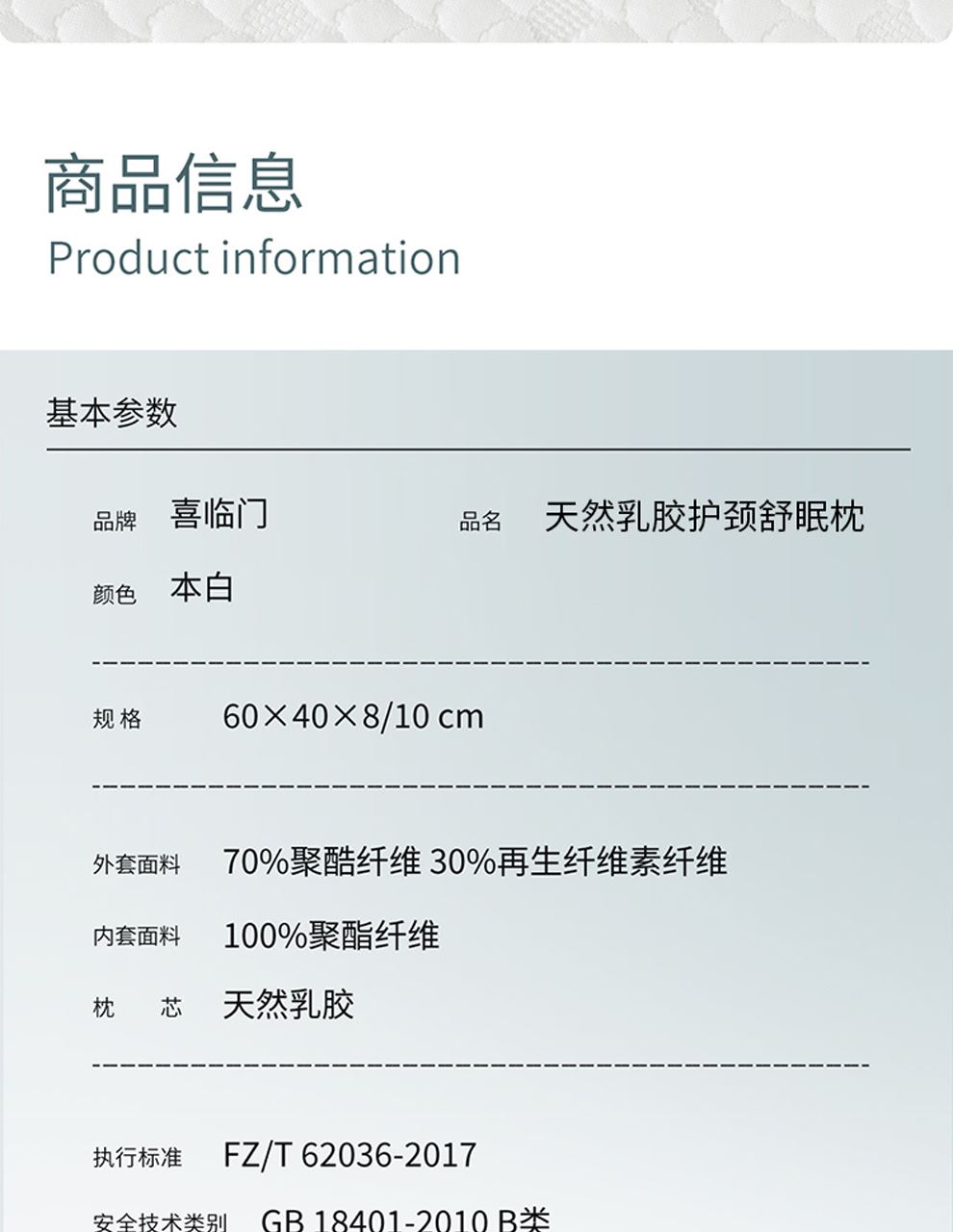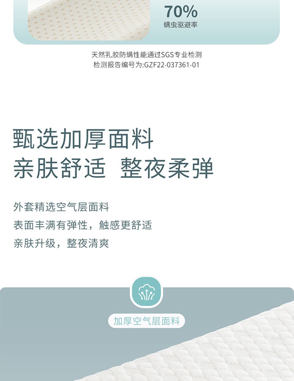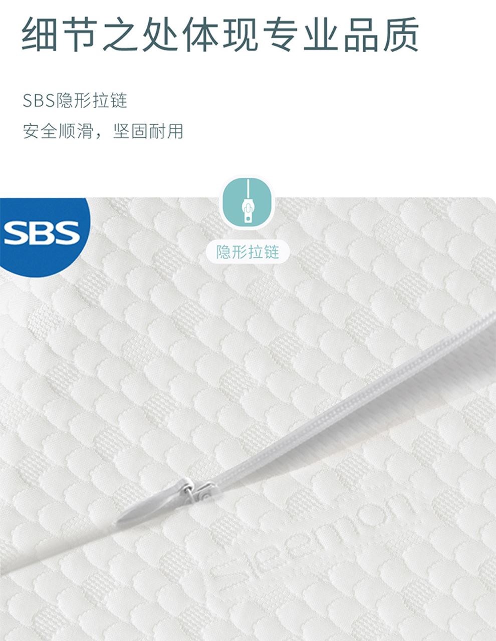 4.泰国天然乳胶:具有柔嫩触感和高效回弹性能,无论平躺还是翻身,都能迅速响应头部变换,更灵敏地贴合头颈。而且天然乳胶蛋白具有抑制细菌和防螨效果,守护身体健康