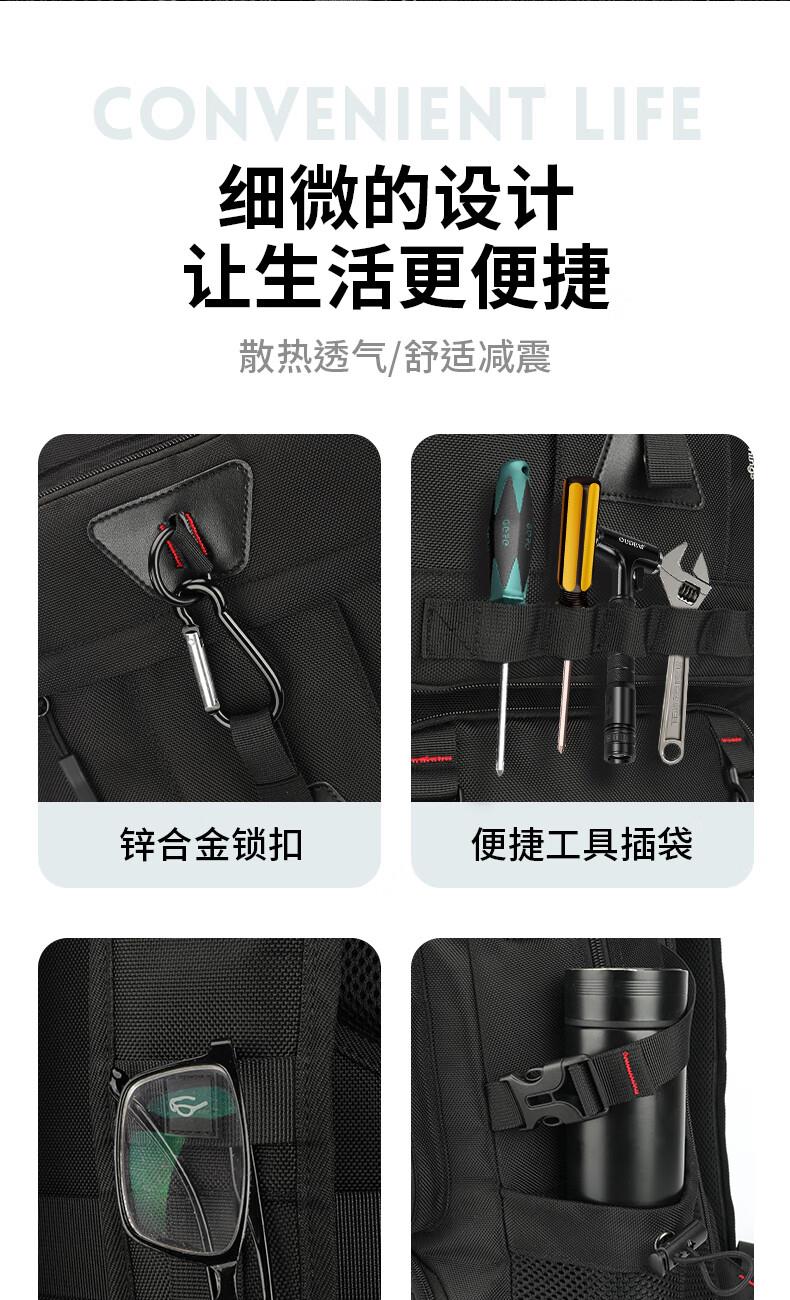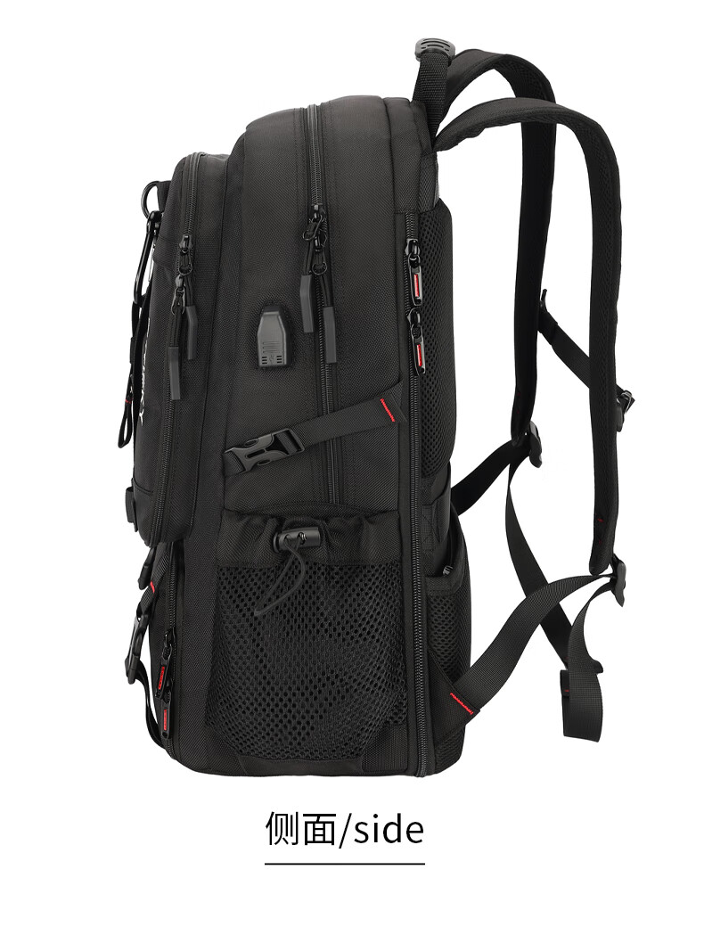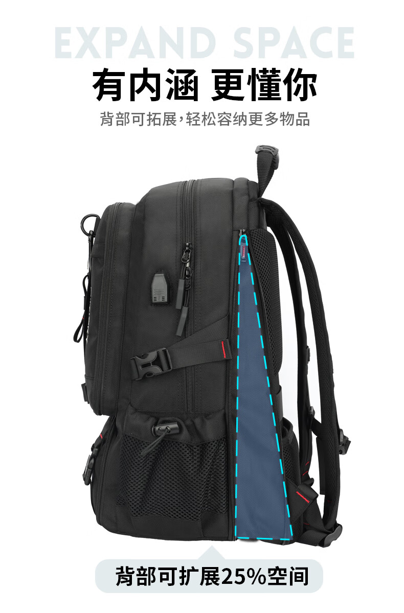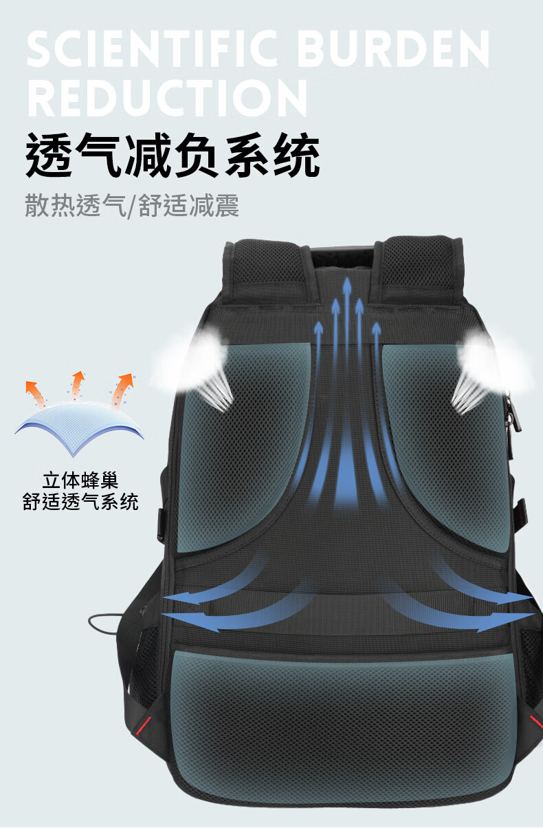 型 号:88157 尺 寸: 56*36*25CM(大号) 材 质:涤沦 颜 色:黑色 重 量:0.88kg 2.大容量设计可放15寸-17寸电脑; 3.功能:笔插袋,文件袋,卡袋,证件袋,外接USB口,钥匙扣+IPAD袋 4.弹力蜂窝背板、透气、缓压、减震