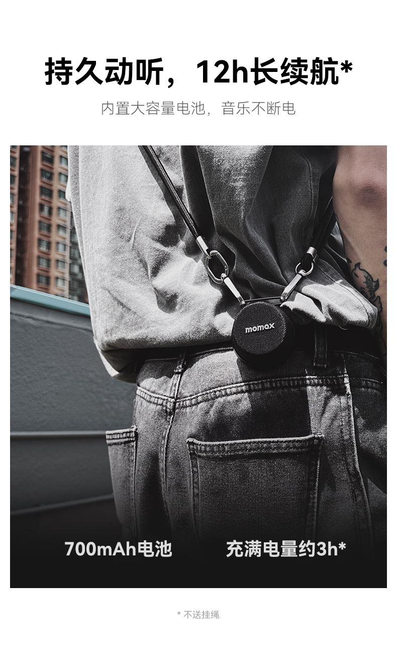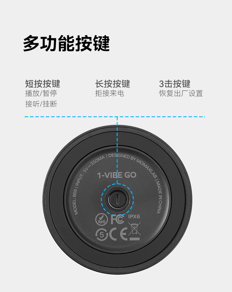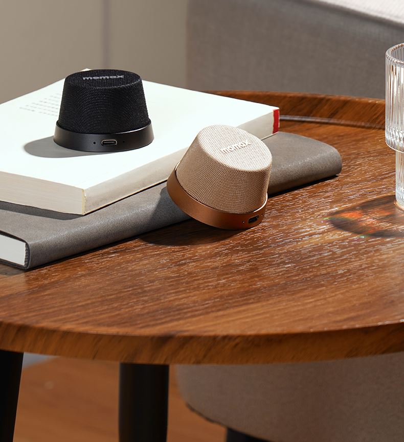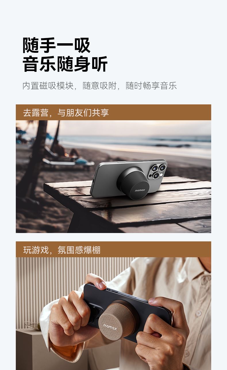 产品材质:ABS+PC 输入:5V⎓350mA 额定输出功率:3W 无线版本:V5.3 有效距离:≤10m(TWS > 5m) 电池容量:700mAh 续航时间:12h 充电时间:3h 尺寸:Φ60mm*37.3mm 重量:85g ± 5g 颜色:黑色,金色 超迷你磁吸,支架&音箱2合1 内置磁吸模块,随意吸附,是音箱,也是手机支架