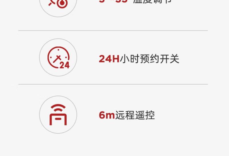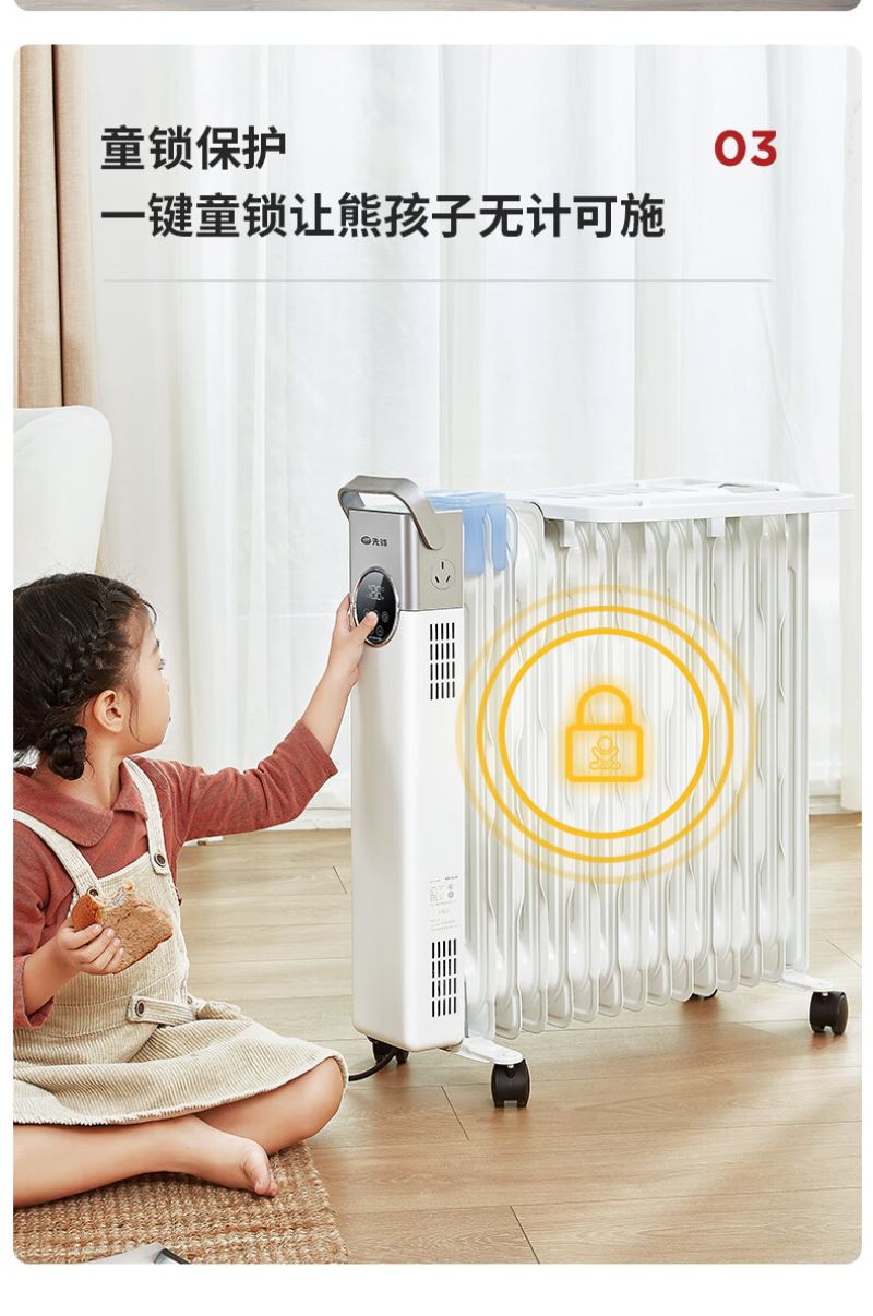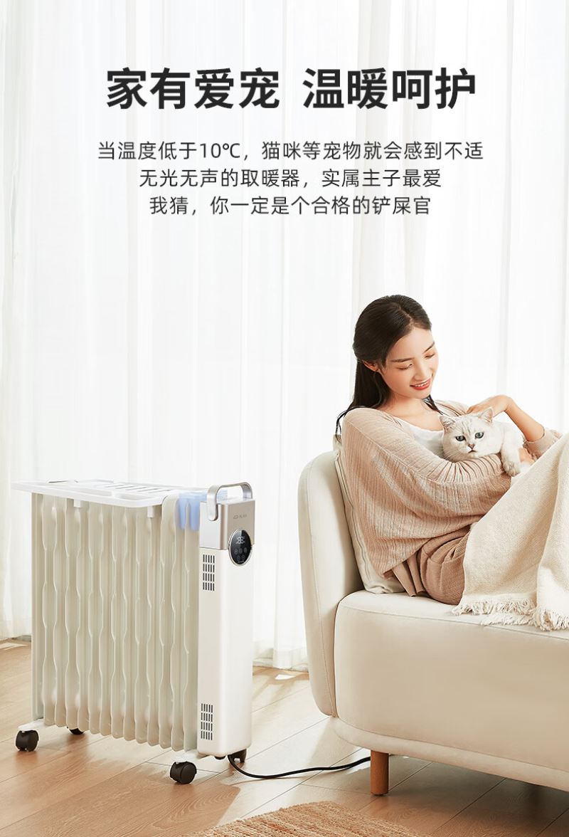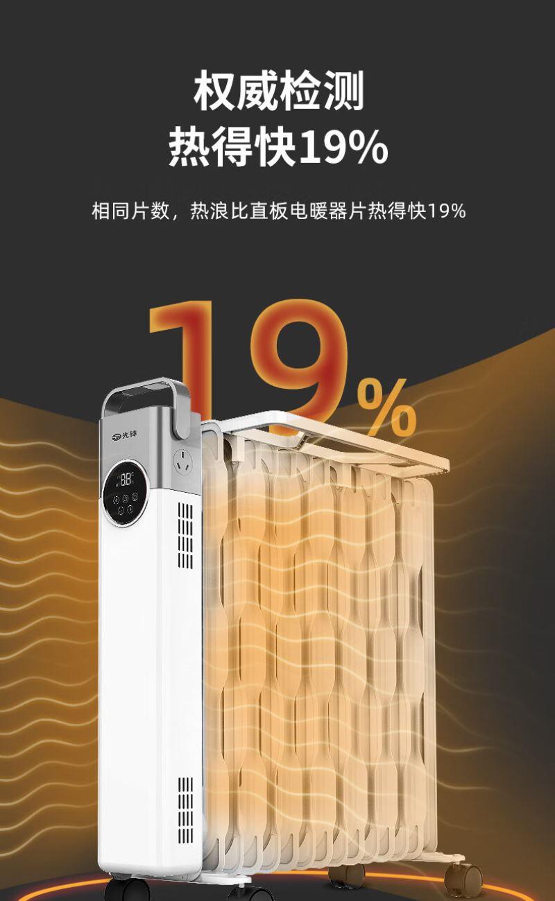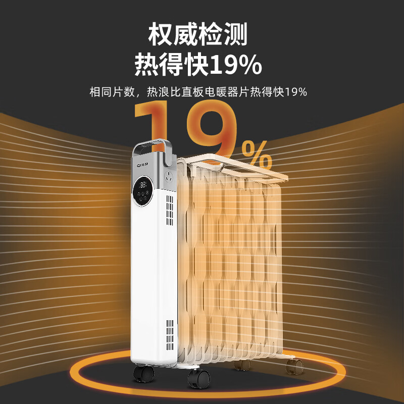 小热浪型油汀体,升温速度快,散热面积大 一体式烘衣架设计 顶部人性化可旋转式提手设计与整机融合一体,推拉移动更便捷 人性化内嵌式自然蒸发式水盒设计,加湿空气不干燥 超大显示屏设计,触屏操作,人机交互简单方便 24小时预约开关机, 6m远距离遥控