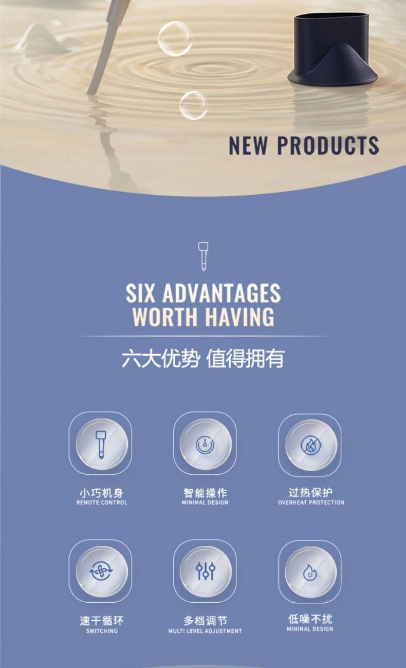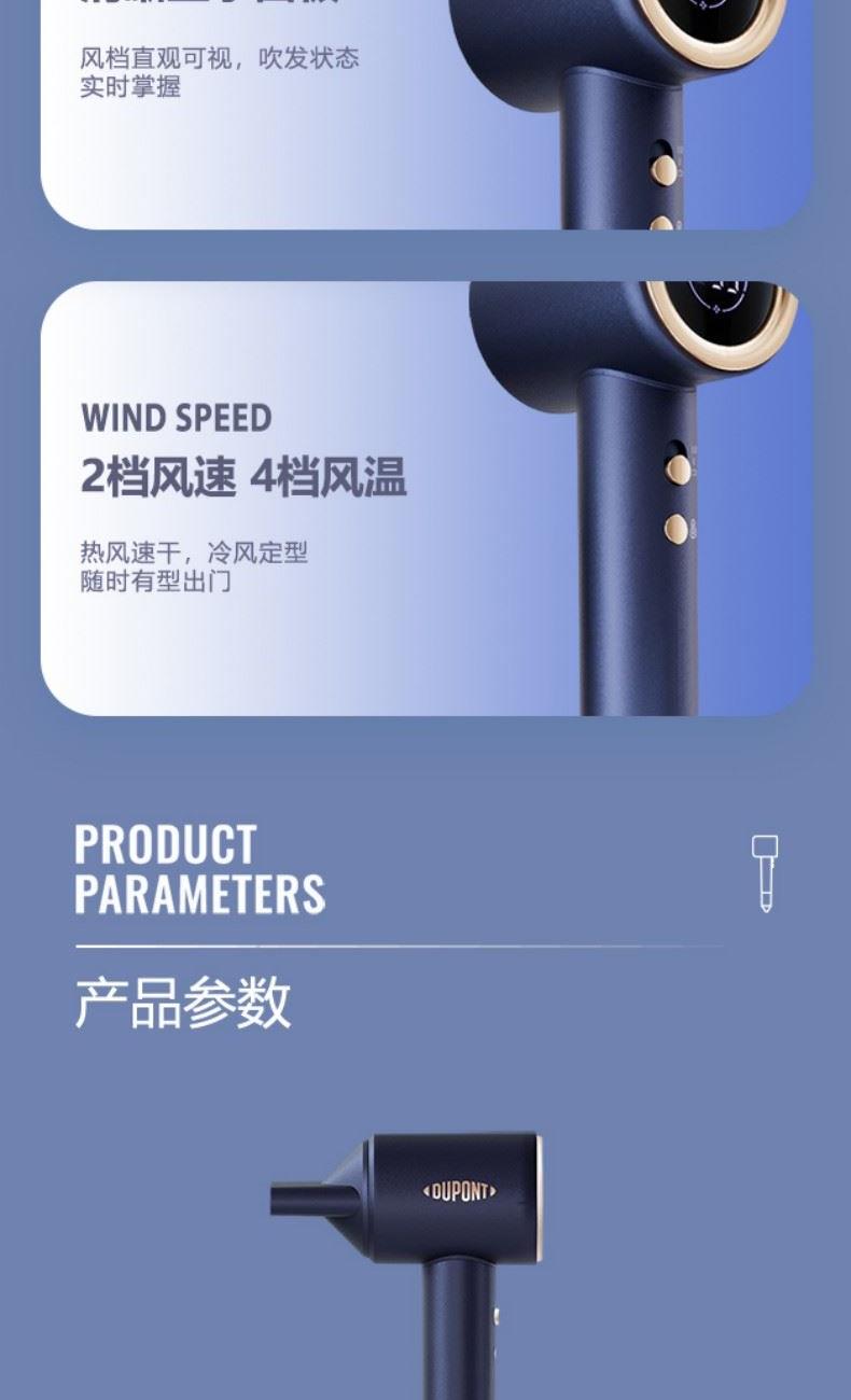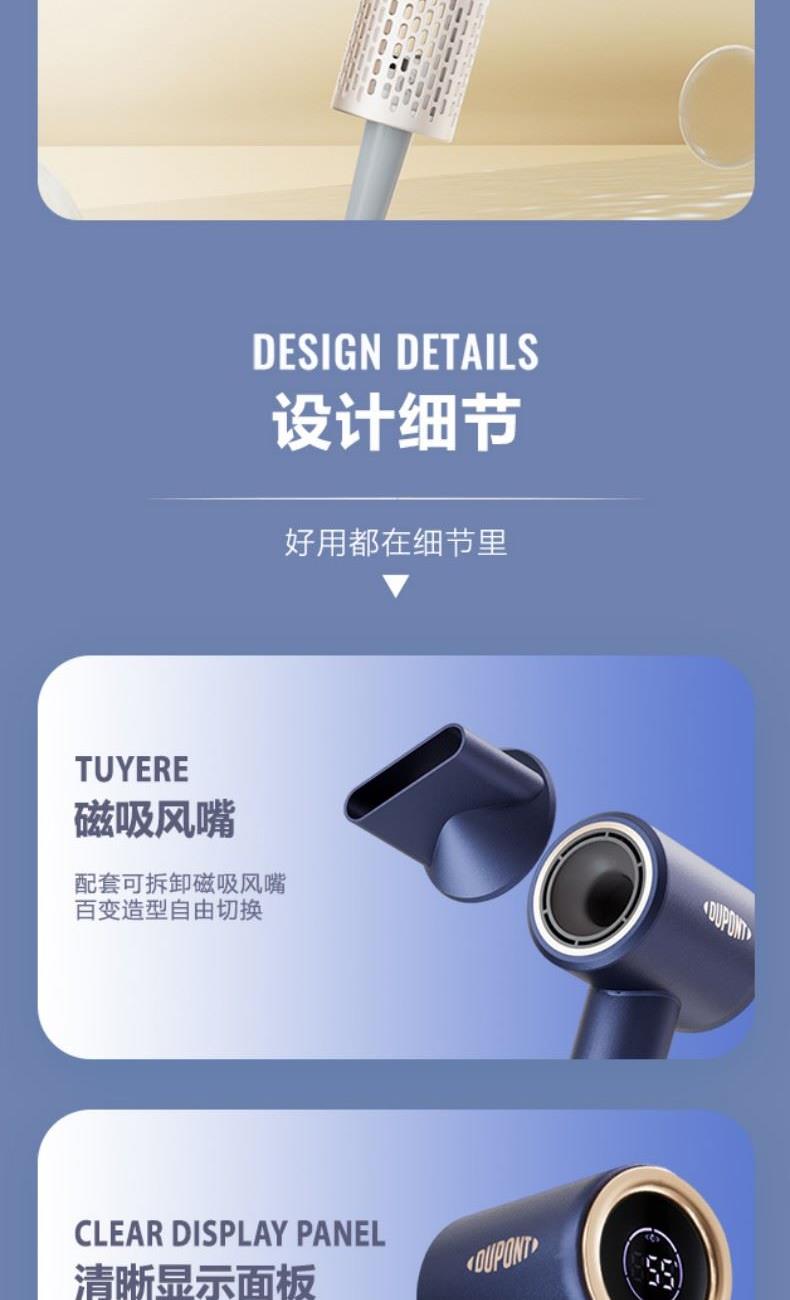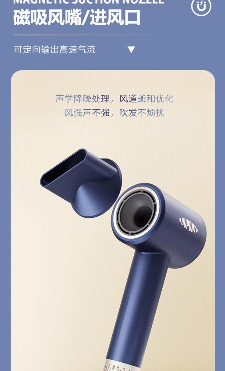 噪音优化,静若微风,声学降噪处理,风道柔和优化,风强声不强,吹发不烦扰。