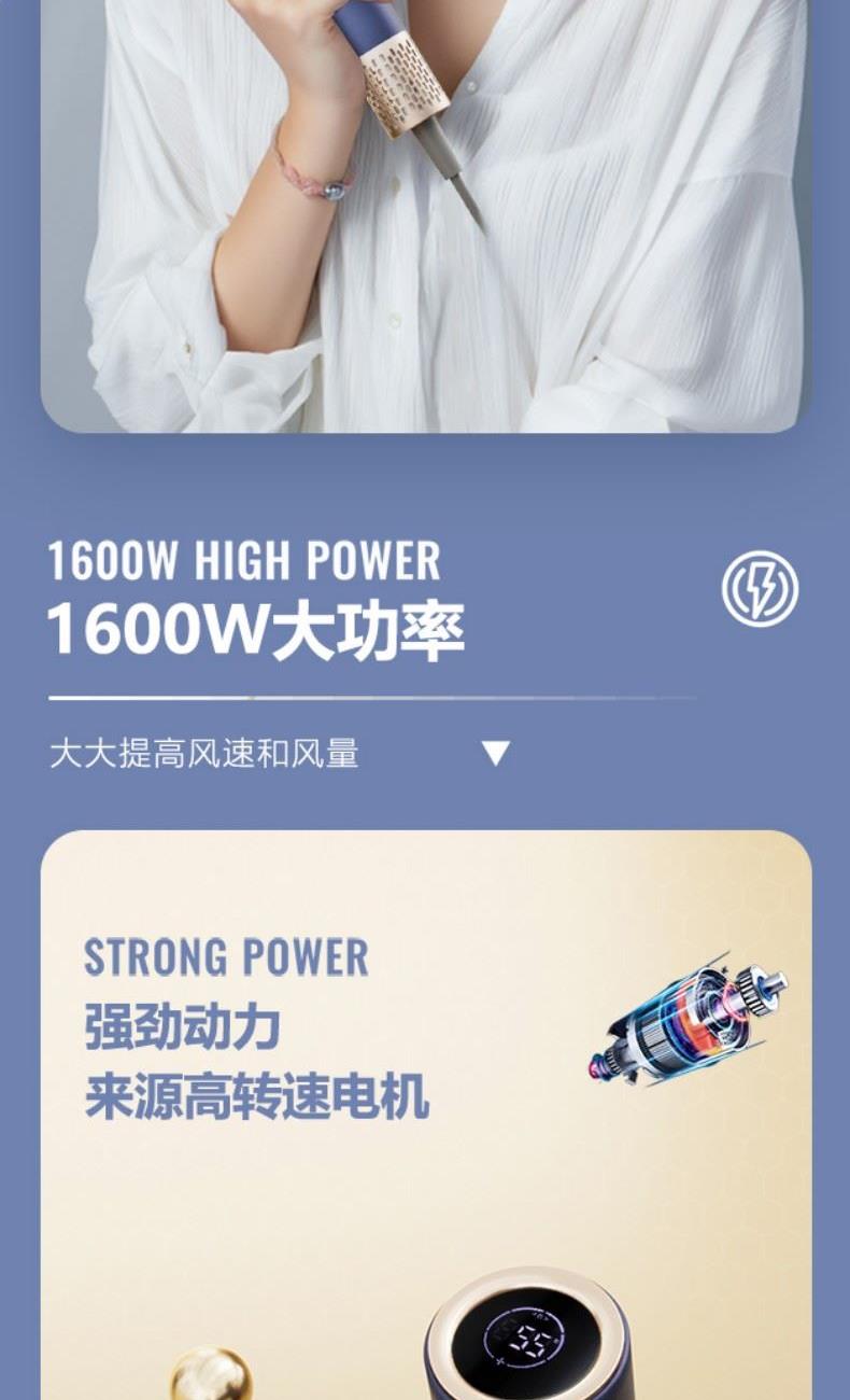 1600W大功率,电机10.5万转,彪悍风力,持续输出,直触发根,干的透彻。