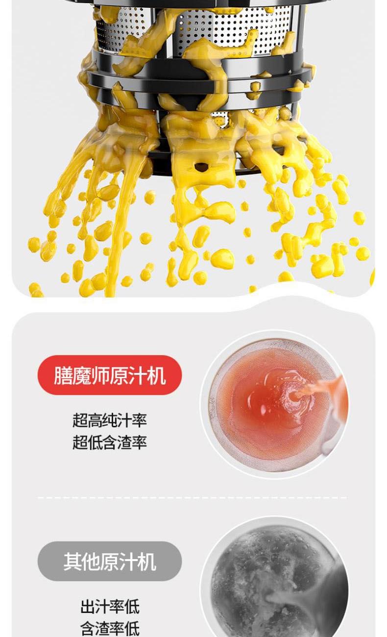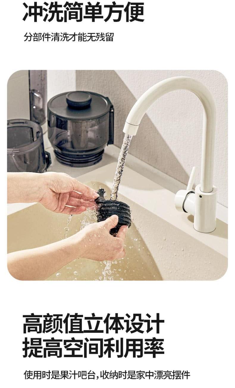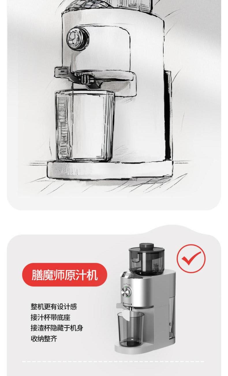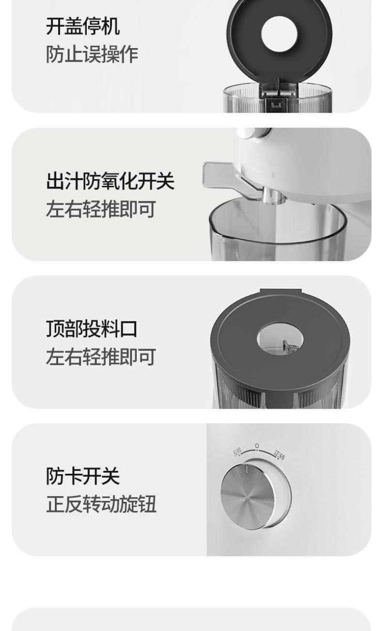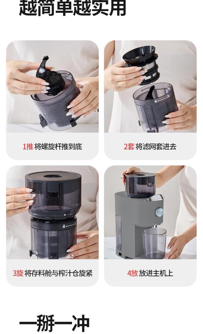 额定电源 :220V~50Hz 额定功率 : 100W 接汁杯容量:1.5L 接渣桶容量:0.9L 净 重 : 2.8kg 产品尺寸 :275mmx140mm x383mm (含推进杆)