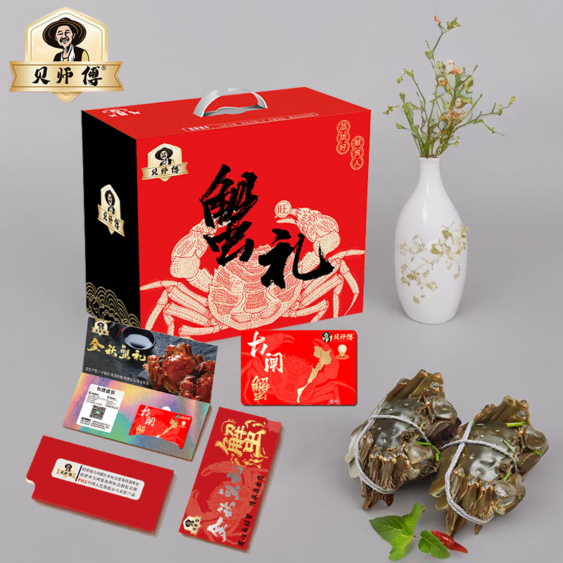 产品规格: 公蟹:3.0两*3只 母蟹:2.0两*3只 卡套形式:精美提货卡册 实物附赠:食蟹工具、蟹醋、姜茶、紫苏、保温冰袋。 售后承诺:阳澄湖空运直达,死蟹、残蟹包赔。 简介: 贝师傅大闸蟹其创始人贝建国先生是阳澄湖蟹传统养蟹人,从事养蟹近四十年。坚持以玉米、小鱼、田螺等传统饲料喂养保证大闸蟹能够拥有良好的生长环境。在苏州市阳澄湖核心水域拥有广阔的养殖基地。因此真正实现了原产地发货。把美味的大闸蟹从阳澄湖直接送到美食者的餐桌。