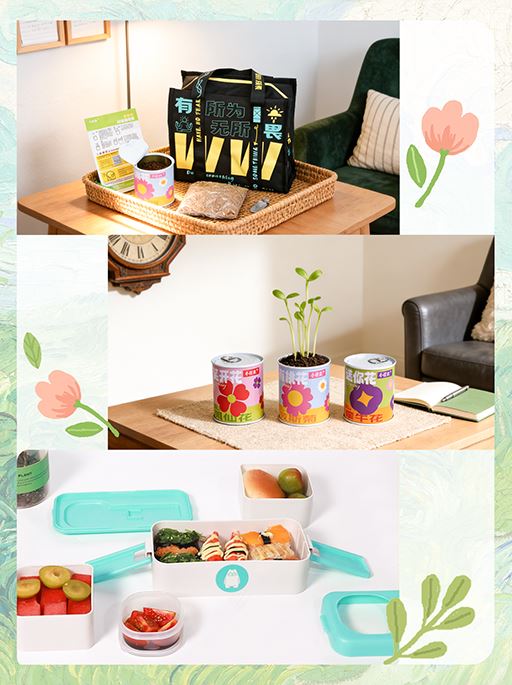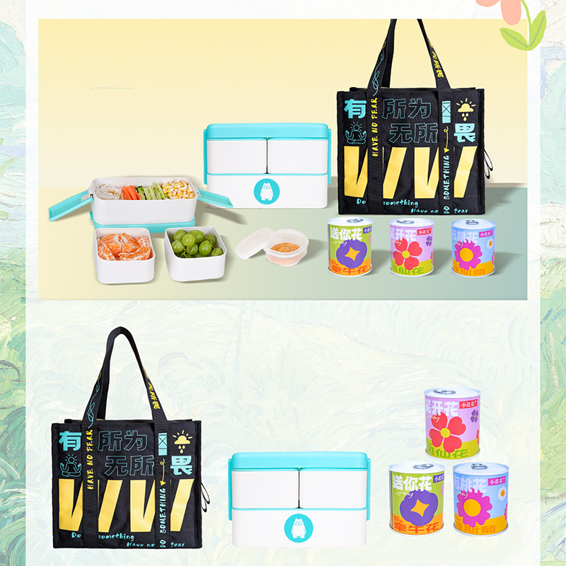 原创手提便当包*1,220*250*130mm 双层分隔饭盒*1,180*123*87mm 罐装绿植*1,(凤仙花/牵牛花/波斯菊)