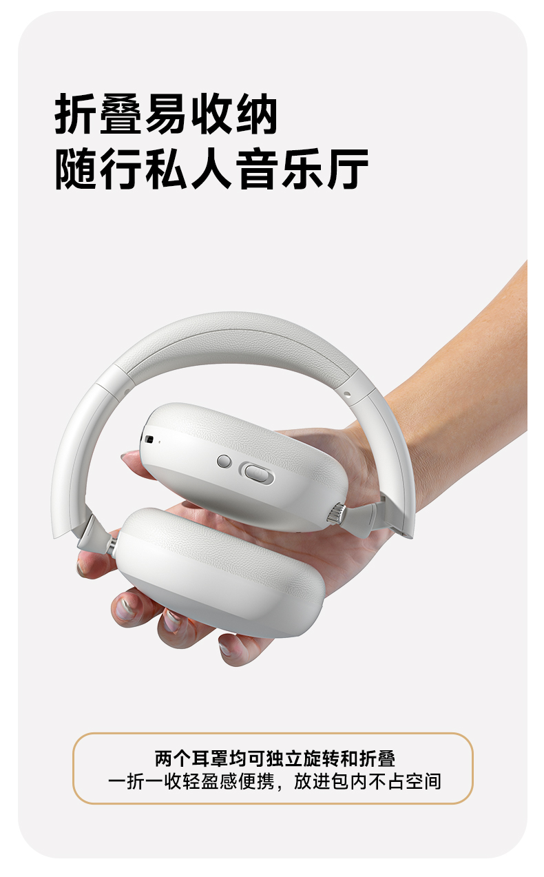 7.耳机可旋转可折叠设计,小巧轻便,搭配旅行绒布袋轻松携带出行;
