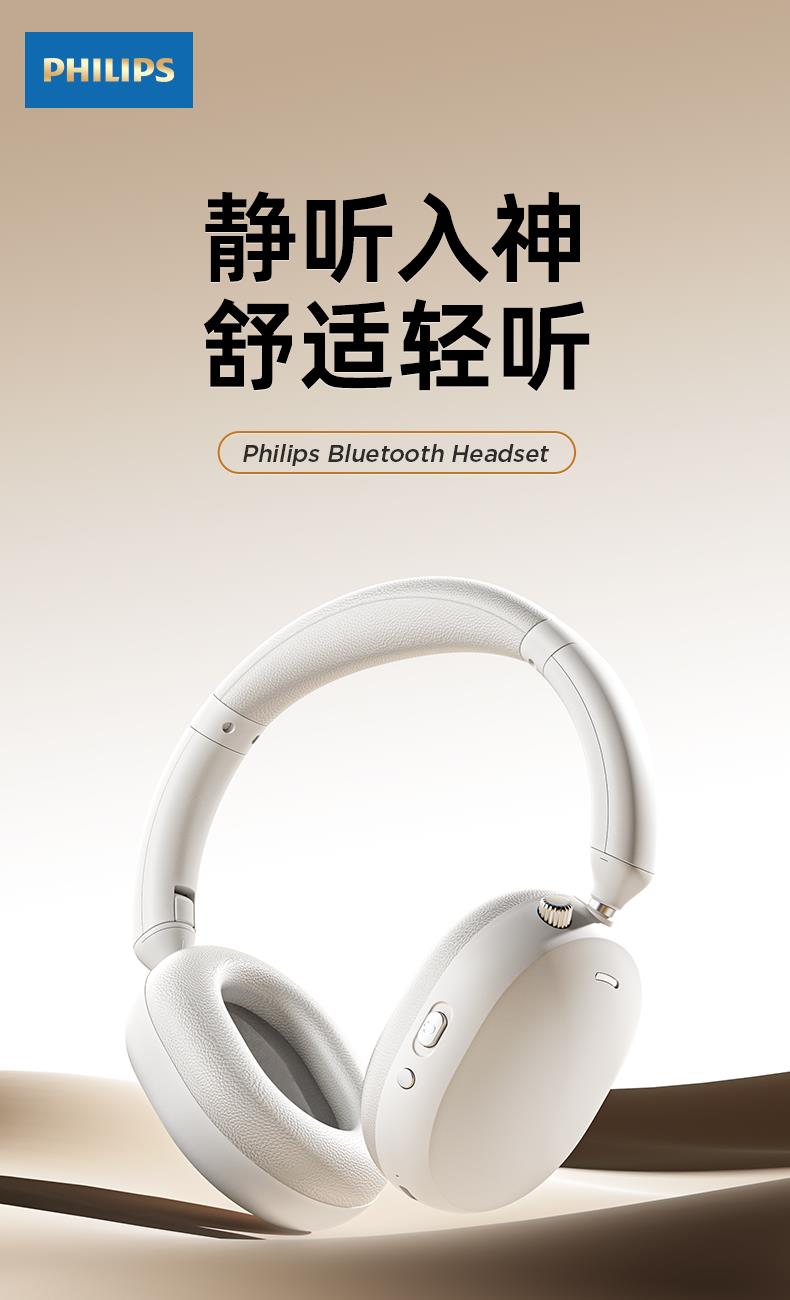 飞利浦头戴式主动降噪蓝牙耳机TAH3220