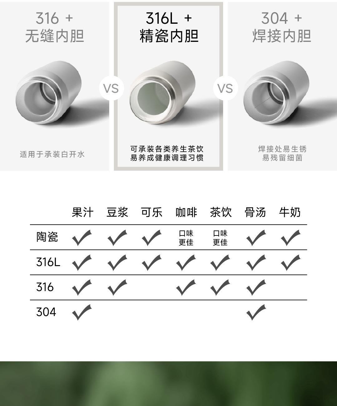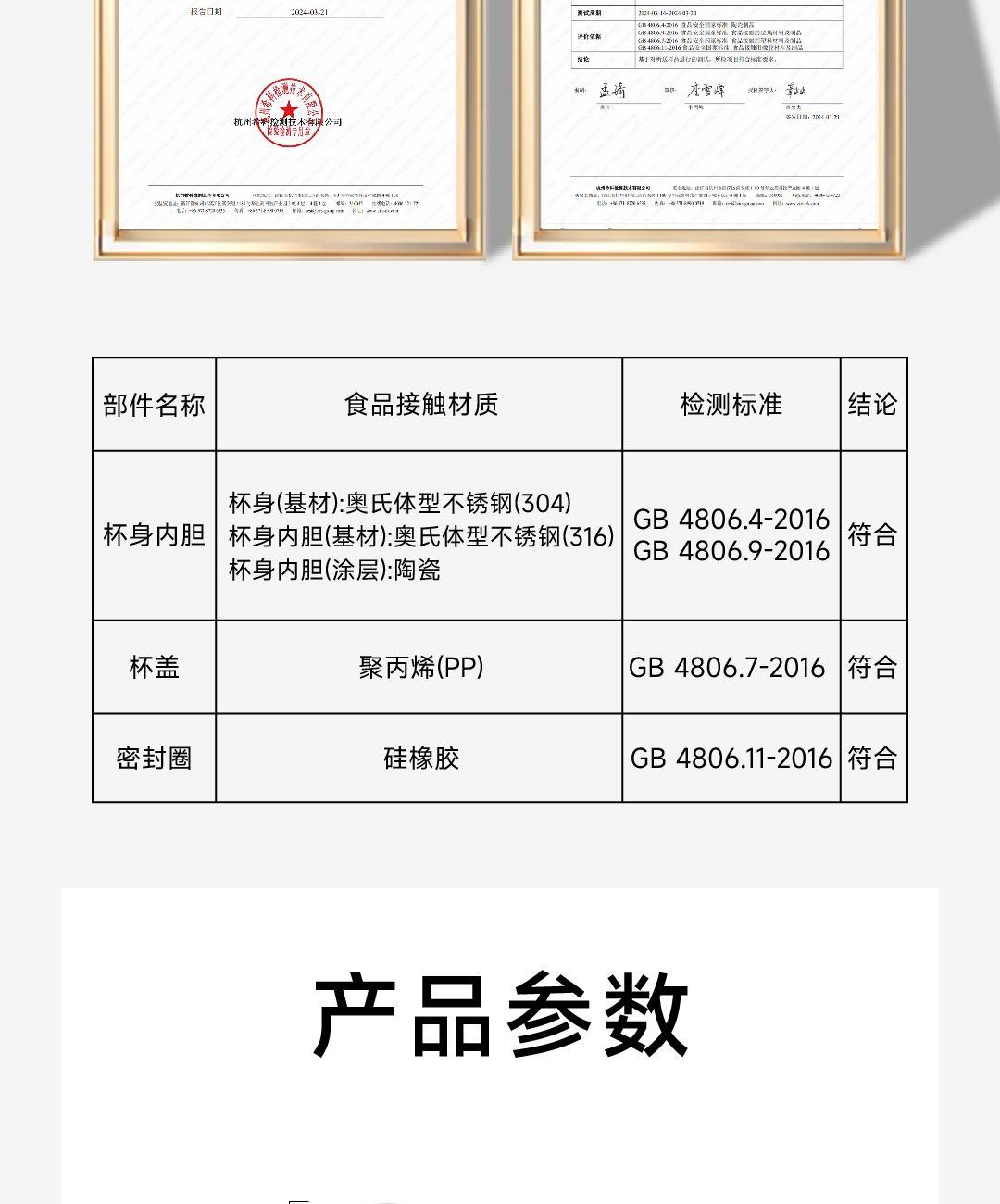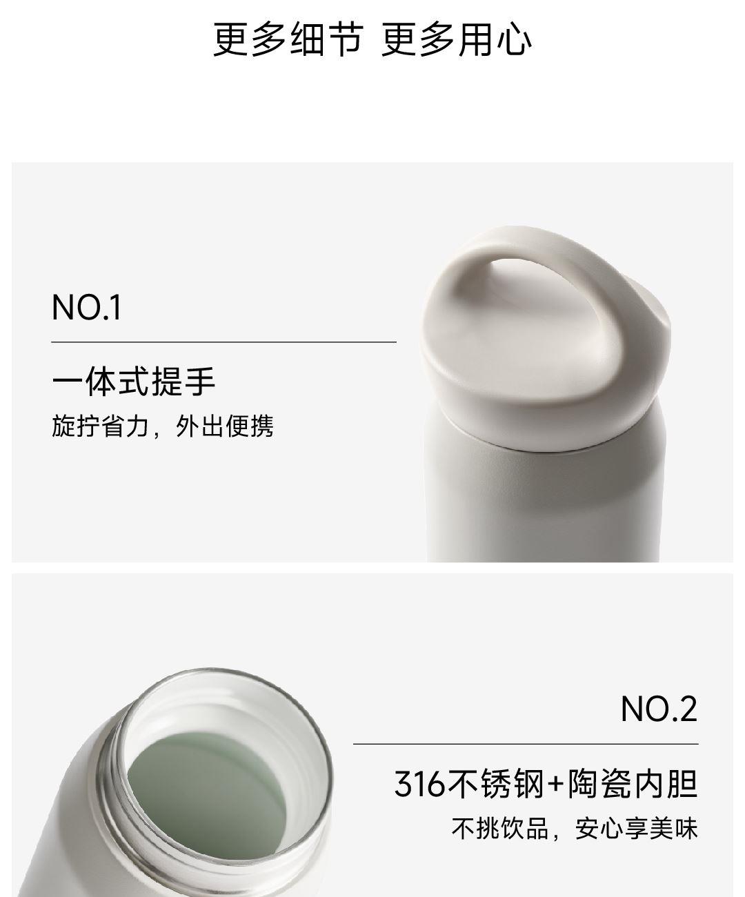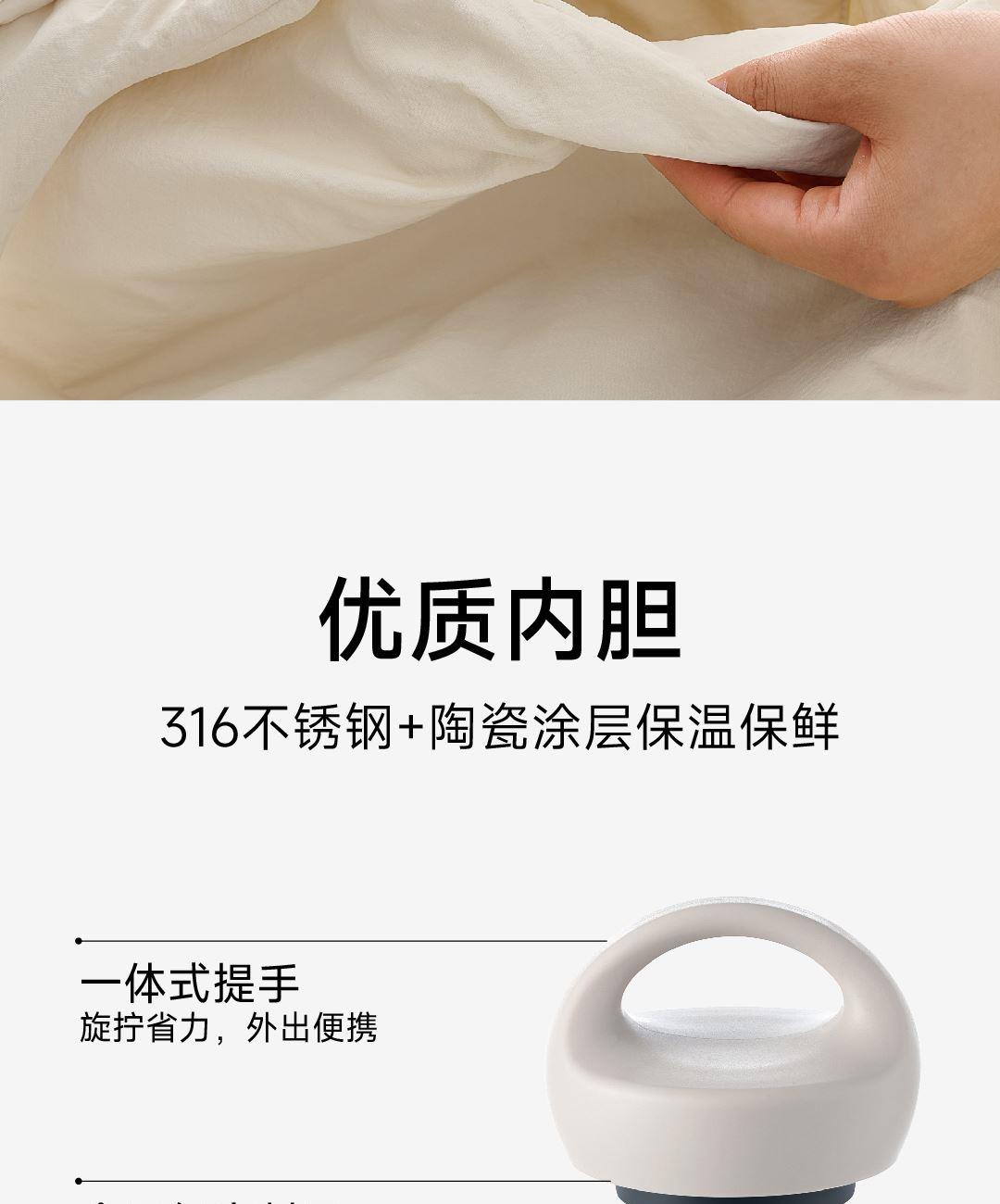SUS316L食用材质 釉面陶瓷覆层内胆 500mL日常容量 开盖直饮方便快捷 手拎式旋钮盖