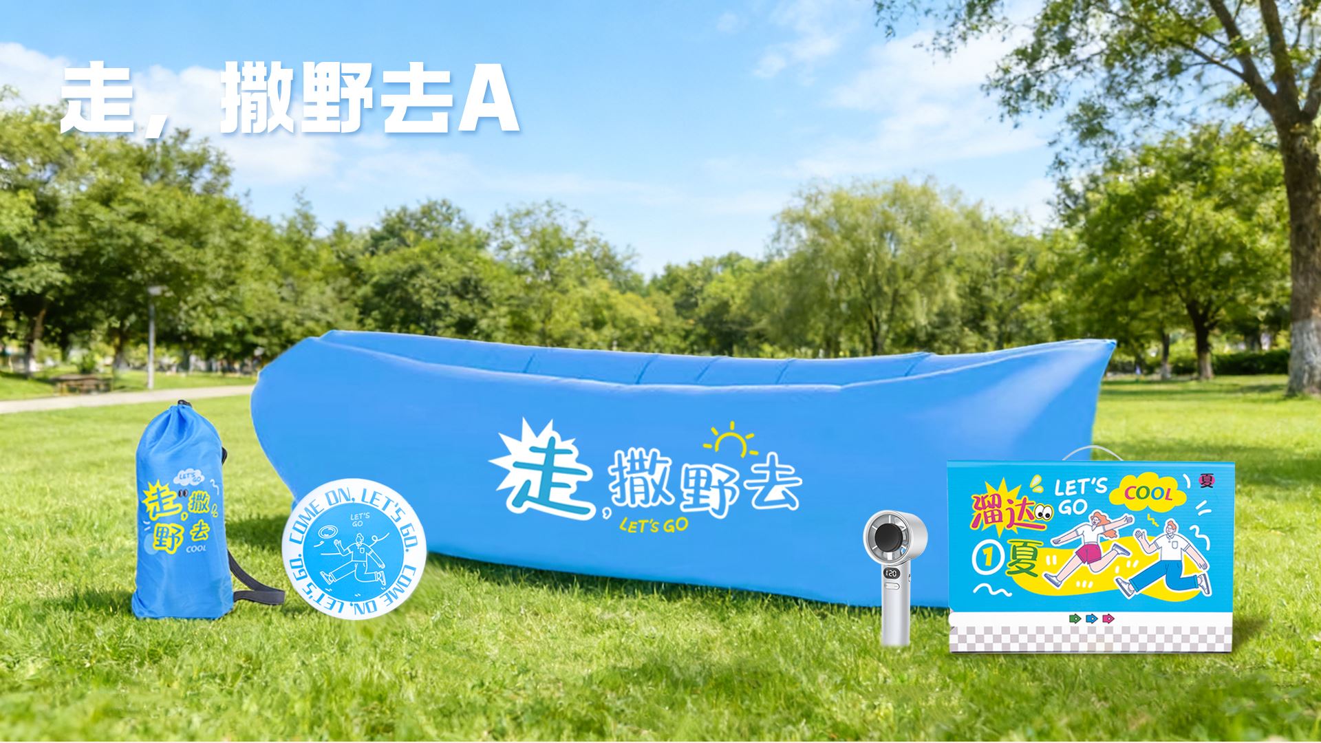 包装盒*1 390*260*85mm 产品配置:手提礼盒*1、充气沙发*1、沙发收纳袋*1、飞盘*1、风扇*1