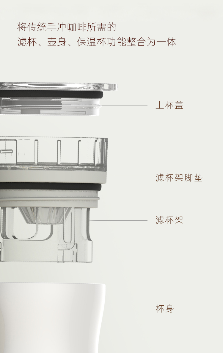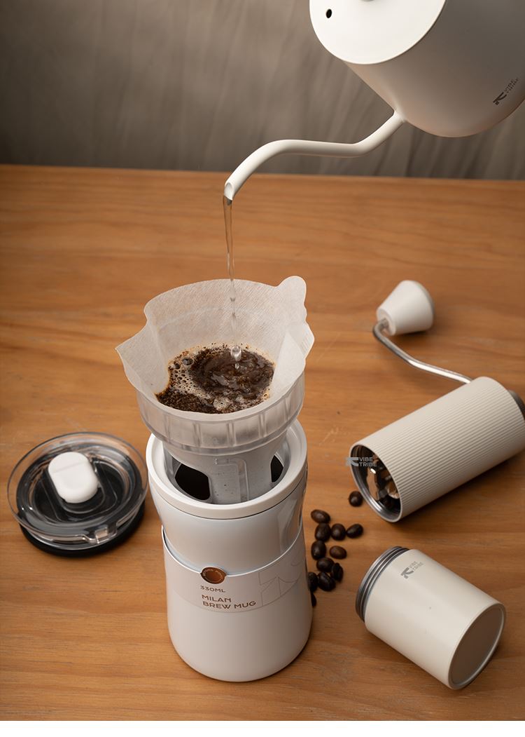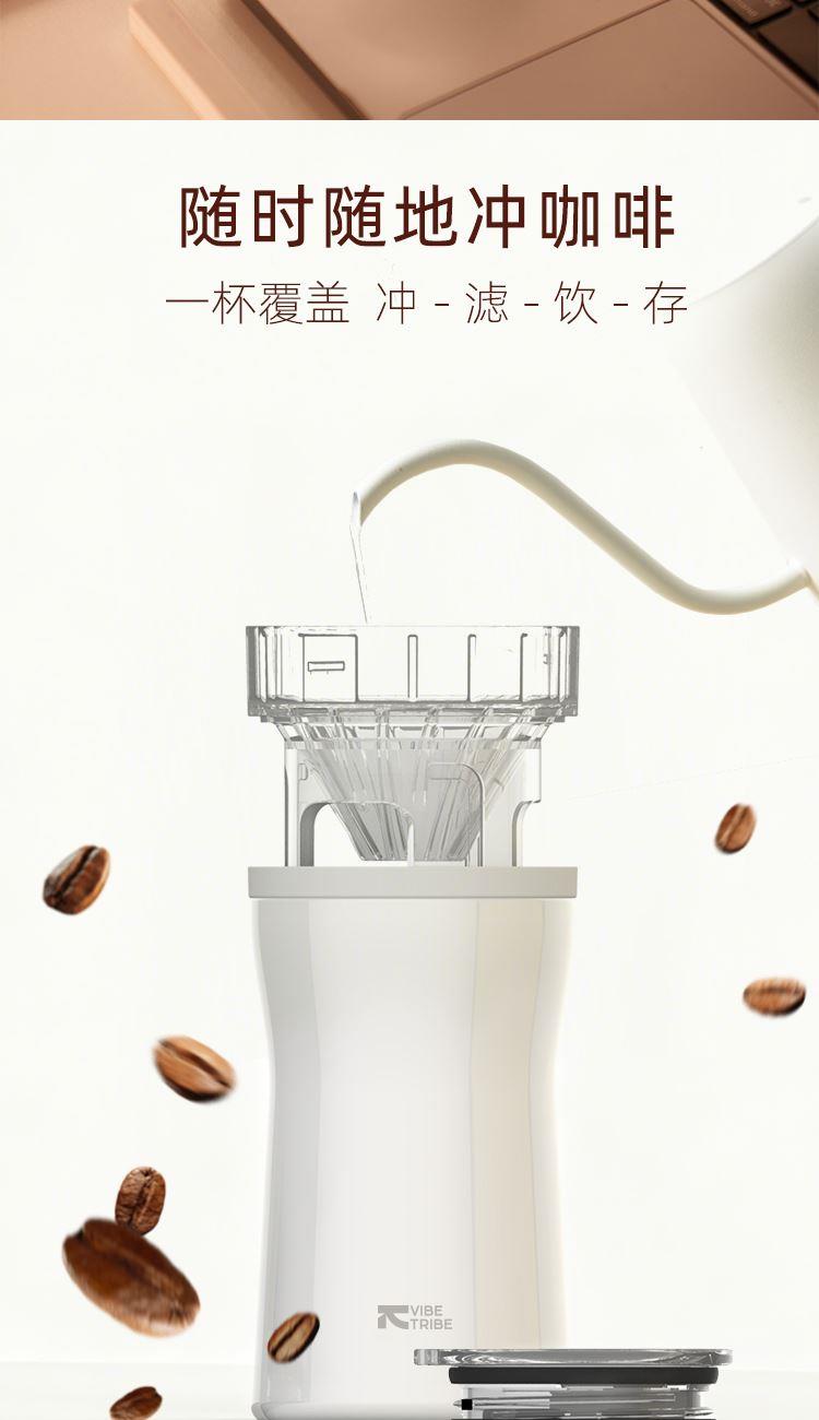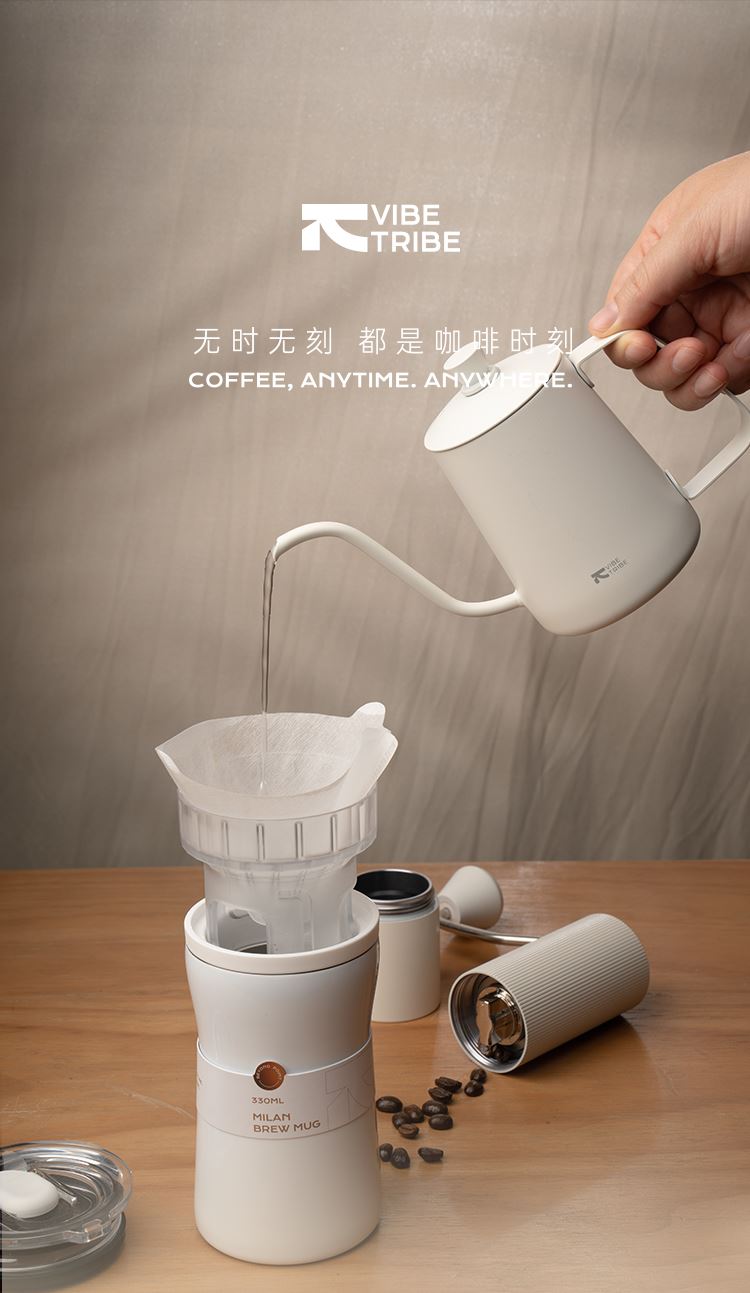 产品:VIBE-TRIBE米兰咖啡杯 产品尺寸:87*164 mm 彩盒尺寸:85*85*170 mm 产品材质:304不锈钢、316不锈钢、PP、Tritan、硅胶 核心卖点: 1. 将传统手冲咖啡所需的滤杯、壶身、保温杯功能整合为一体;一杯覆盖「冲 - 滤 - 饮 - 存」全流程;完成冲泡分享; 2. 双层316不锈钢内胆保温保冷,Tritan 滤杯耐摔透亮; 3.单手可握,居家、办公、户外一杯解锁全场景,分享咖啡。