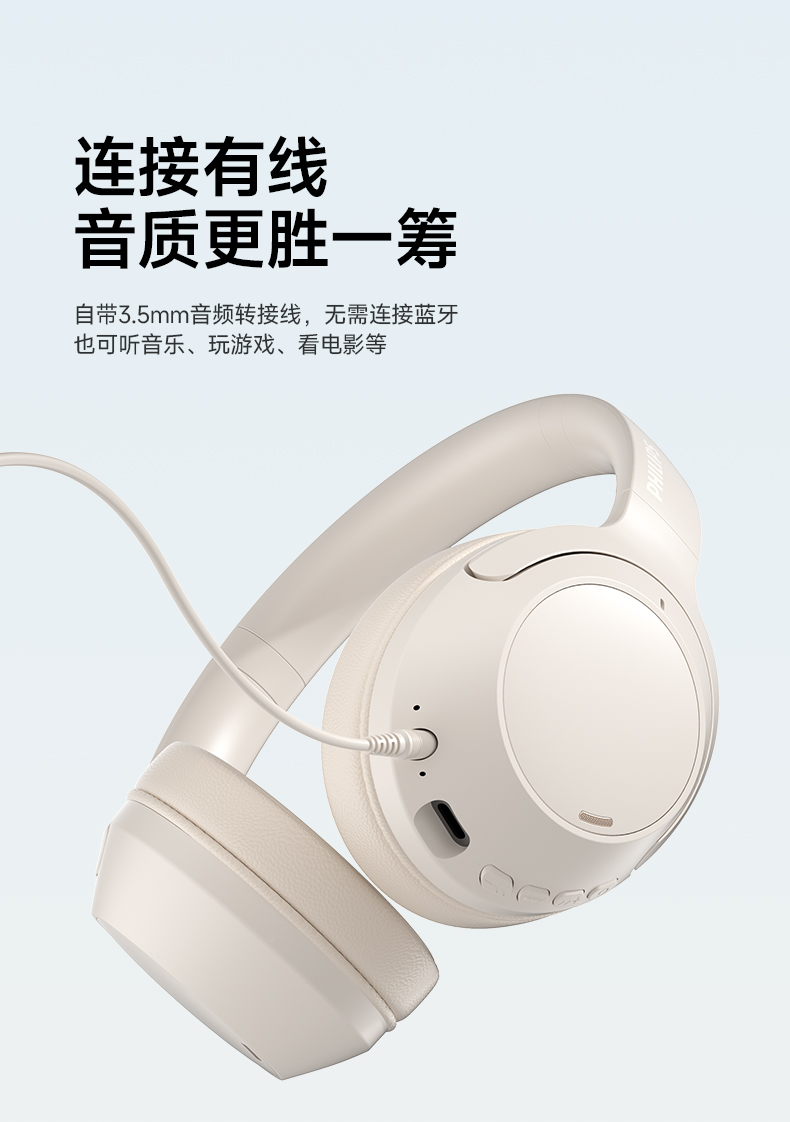 5.双模式连接,自带3.5mm接口和音频线,即使耳机没电仍然可以有线聆听音乐;
