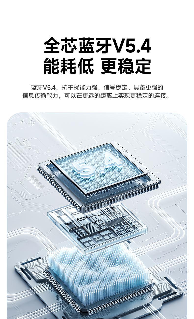 1.采用5.4蓝牙、稳定行、兼容性强,延迟压到更低,音质发挥到更出色;