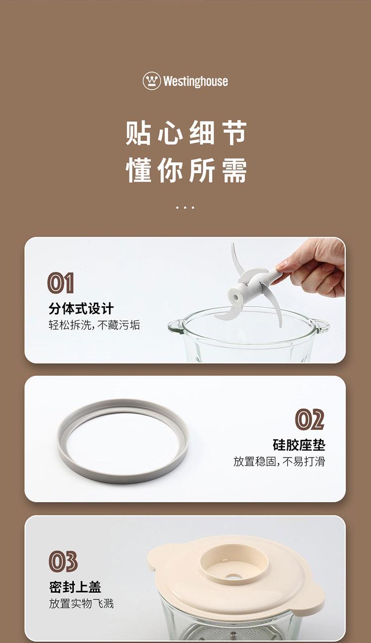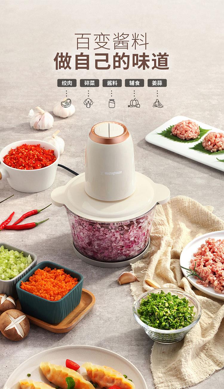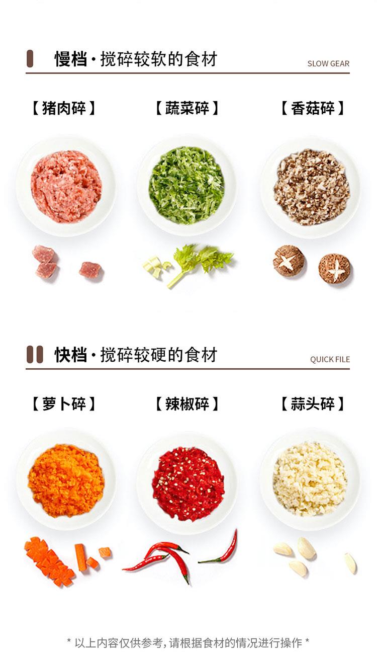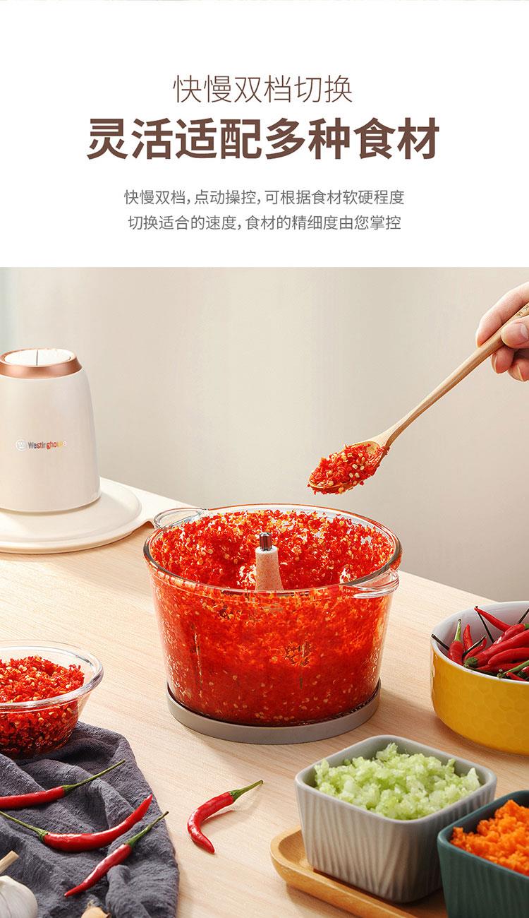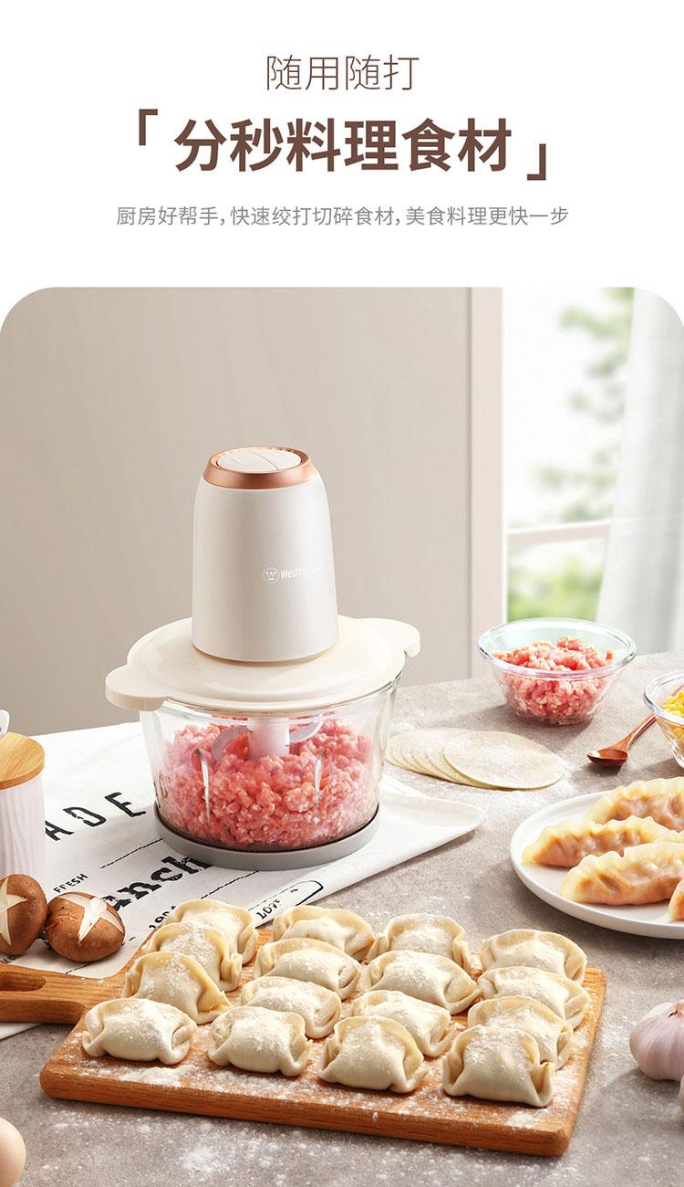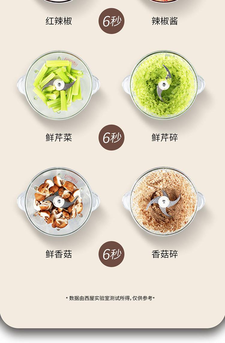 产品规格: 额定电压:220V~50Hz 额定功率:350W 额定容量:1.8L 绞肉杯材质:玻璃 产品颜色:杏色 操作方式:按键操作 产品特点: 1.8L家庭大容量,绞肉、碎菜得心应手; 快慢双档切换,点动操作,灵活适配多种食材; 350W大功率,强劲动力,快速均匀切碎食材; S型双层精钢刀头,多角度精细切割食材; 全钢轴心,防打滑、抗磨损; 加厚高硼硅玻璃,把握食材切割状态。