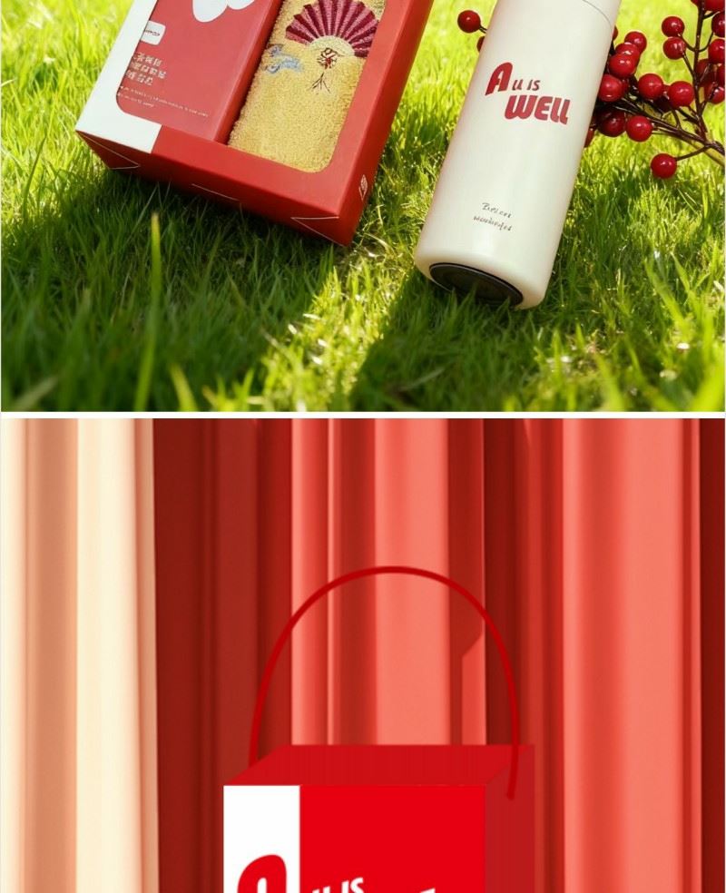 产品内容 1、 唐风古韵棉毛巾×1 棉 98 克 34*74CM 2、 炫彩保温杯×1 304内胆 PP杯盖 420毫升容量 外盒: 25×14×7cm