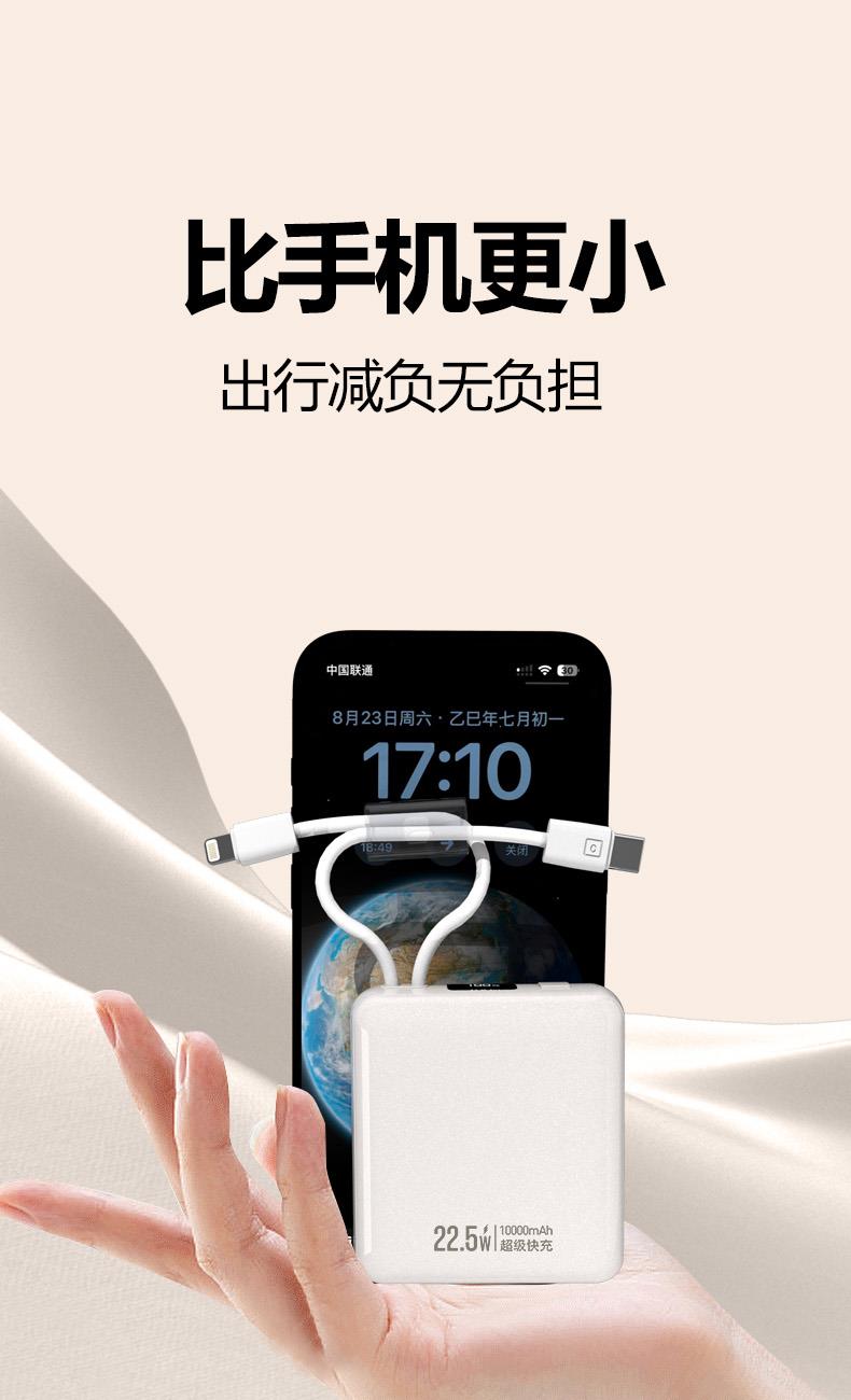 十足酷迷你数显快充自带线移动电源ZS7 礼品已成功加入PPT!
