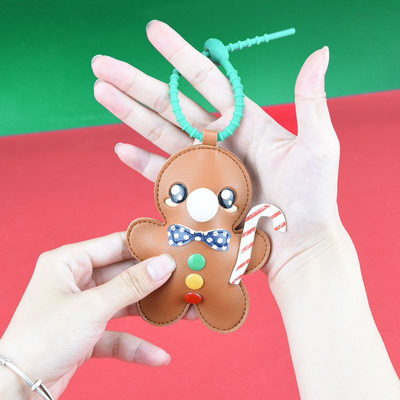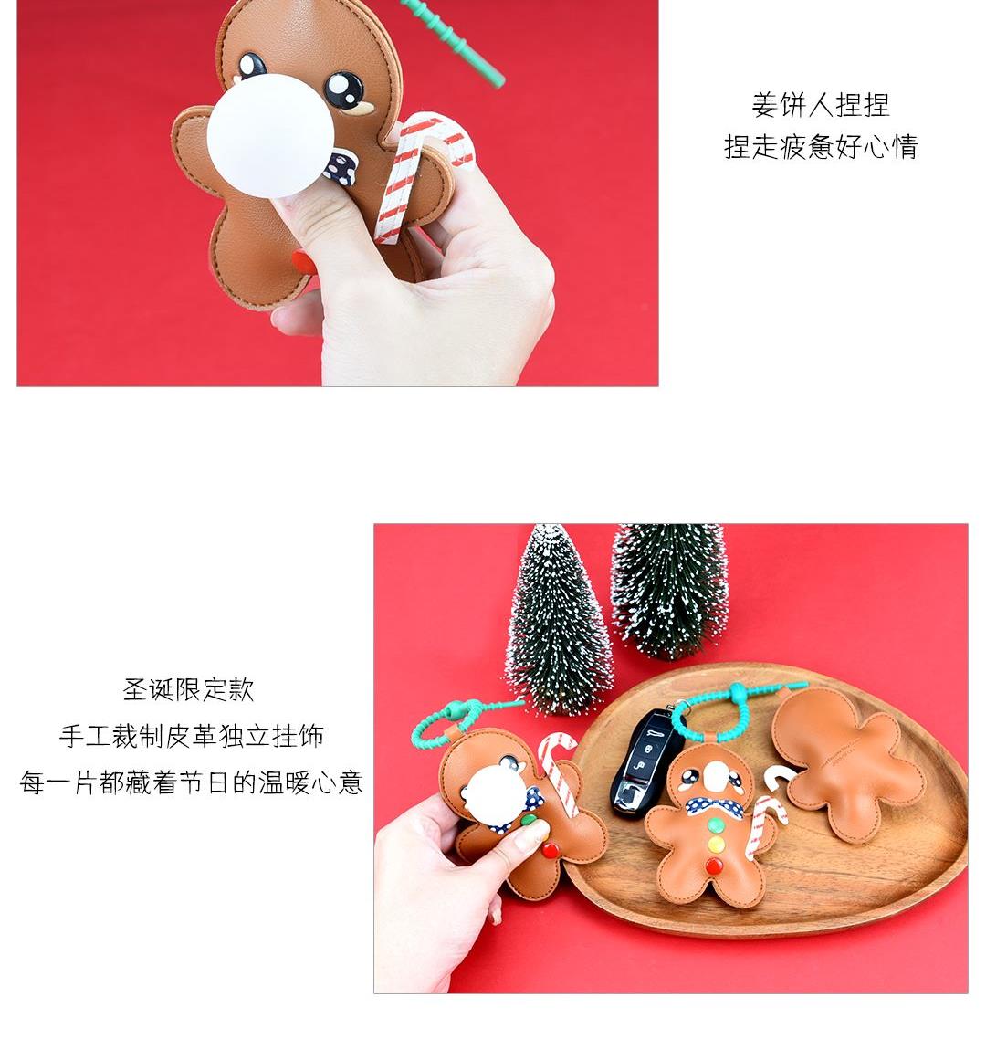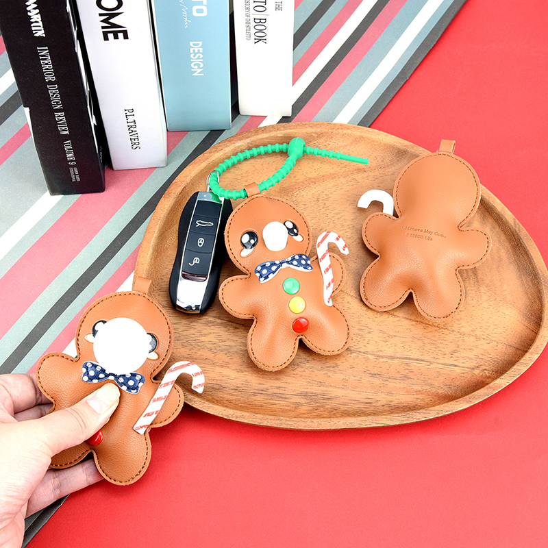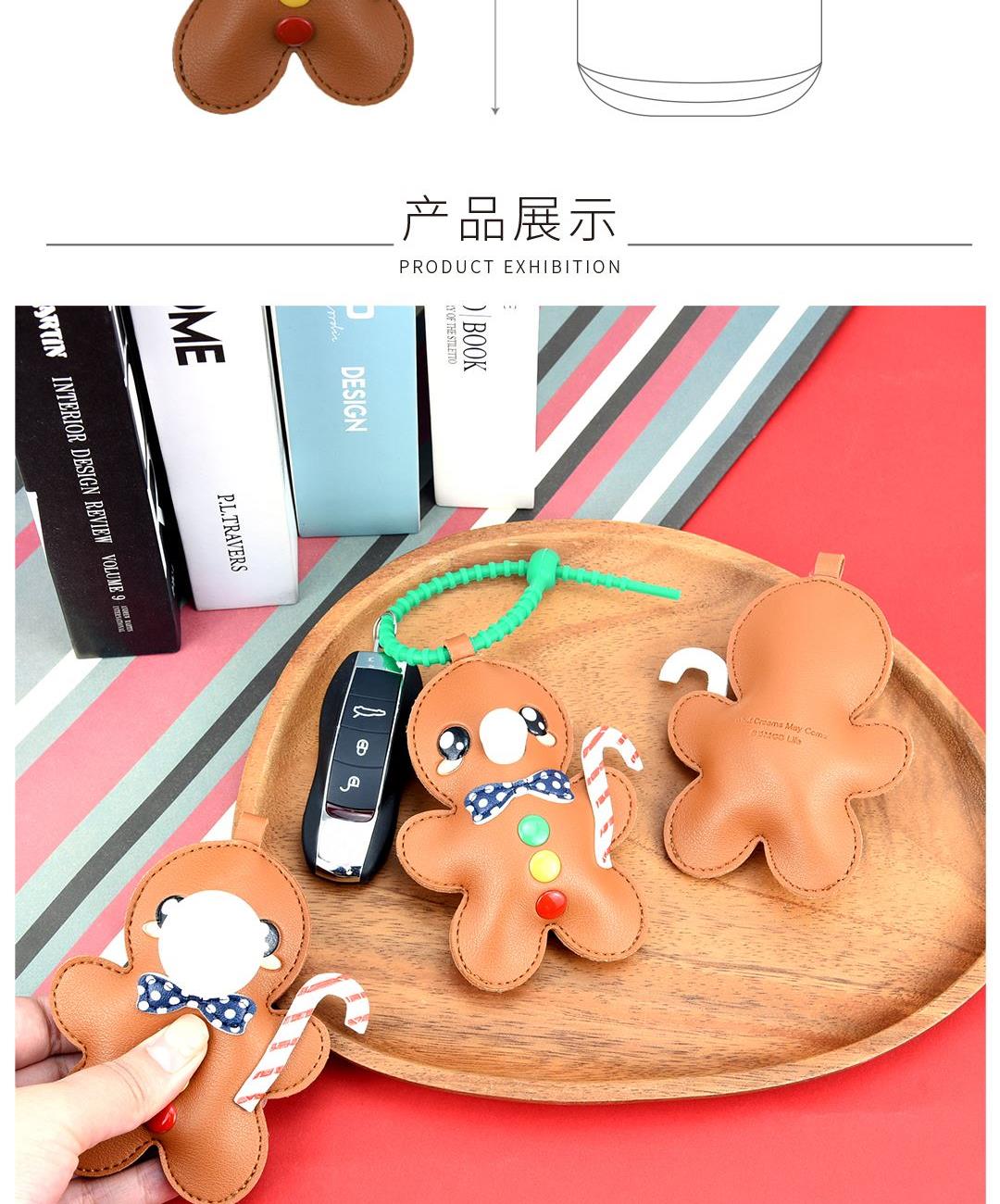 姜饼人 (约10.3cmX11cm) 大小大概是一只掌心大小 产品可多功能使用 如做包挂挂件/钥匙扣/车挂件 选料选用PU皮材质,耐磨耐用不易变形 内里填棉线,柔软有弹性 做工上精致的缝合走线,牢固不脱线 挂件边缘皮革手工多边打磨,不毛糙,经久耐用