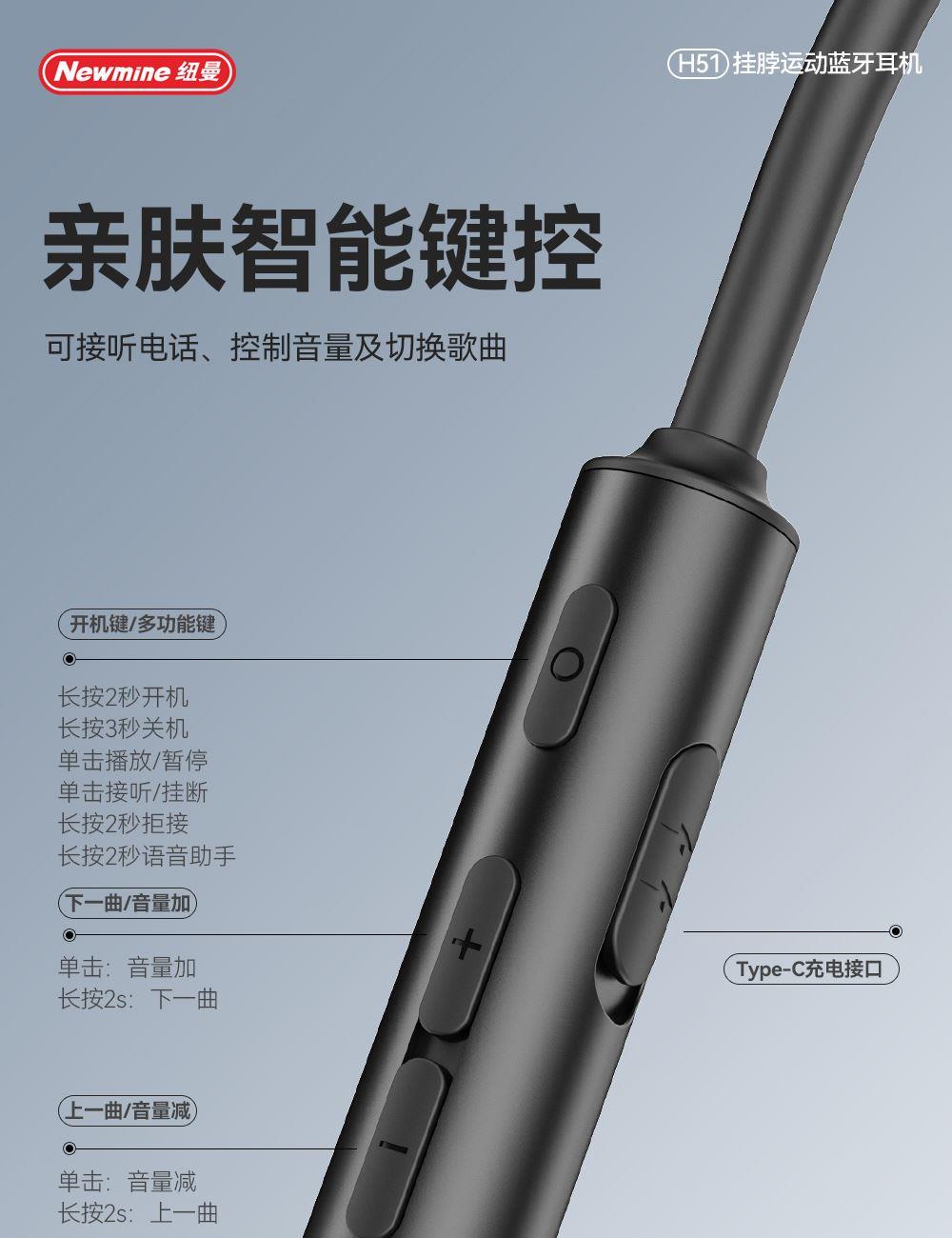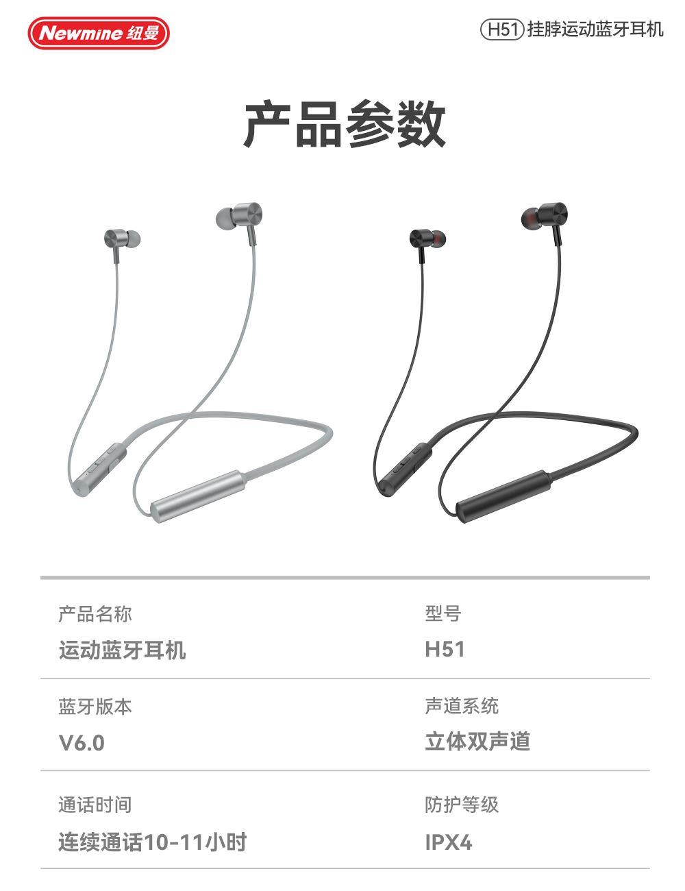 纽曼无线运动磁吸蓝牙耳机H51