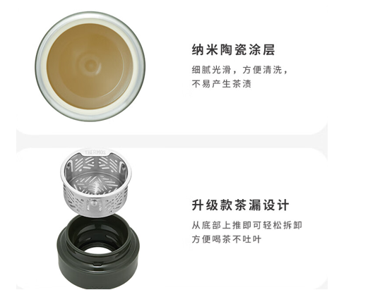 颜 色:WH白雪/BK远岱黑色/RD红梅红色/GR松竹绿色 容 量:550ml 类 型:旋盖型带茶隔 定 制:可以定制 材 质:陶瓷图层内胆 保 温:6小时大约60°C 保 冷:6小时大约10°C