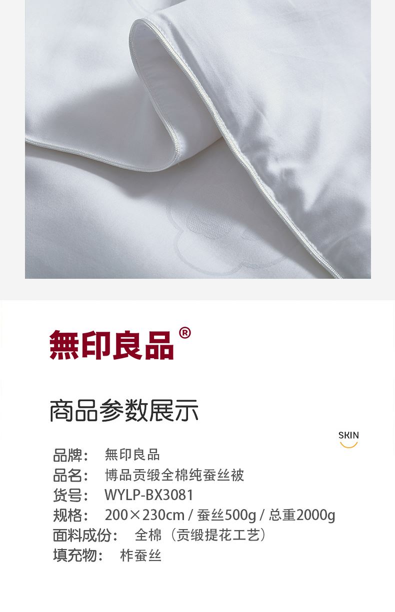 無印良品博品贡缎全棉纯蚕丝被WYLP-BX3081