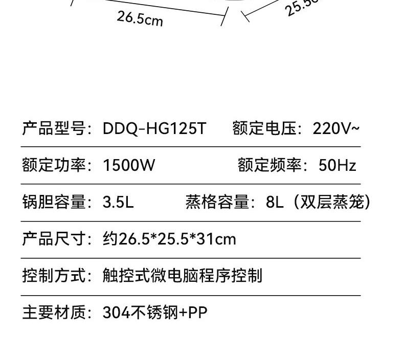 德世朗多功能电蒸锅DDQ-HG125T